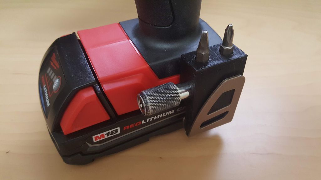 Bithouder voor de riemclip op een Milwaukee M18 boormachine.