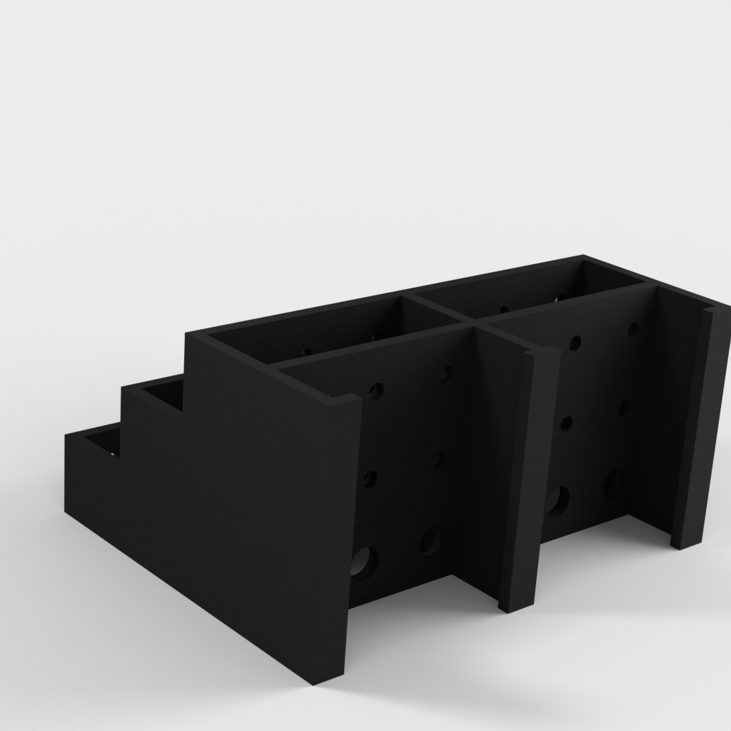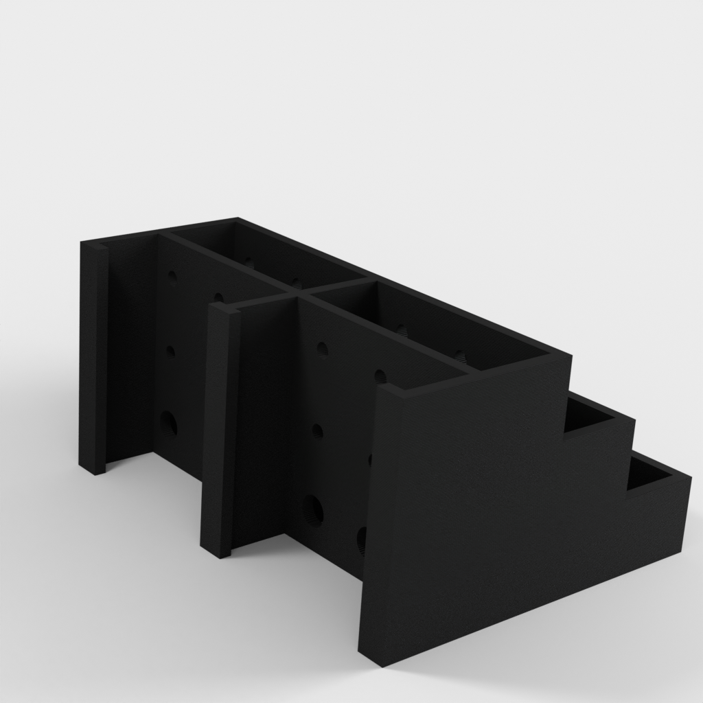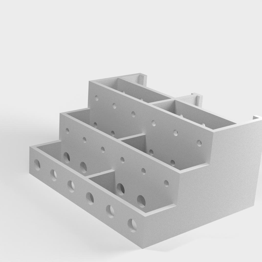 Met deze schroevendraaierhouder heb je eenvoudig en praktisch controle over je schroevendraaiers. De houder biedt plaats aan 3 sets van 6 schroevendraaiers, zodat je altijd een geordend overzicht van je gereedschap hebt. Elke schroevendraaier heeft zijn eigen plaats, met drie niveaus voor korte, middelgrote en lange schroevendraaiers. Voor een versie voor wandmontage, zie dit ontwerp: https://www.thingiverse.com/thing:1240992