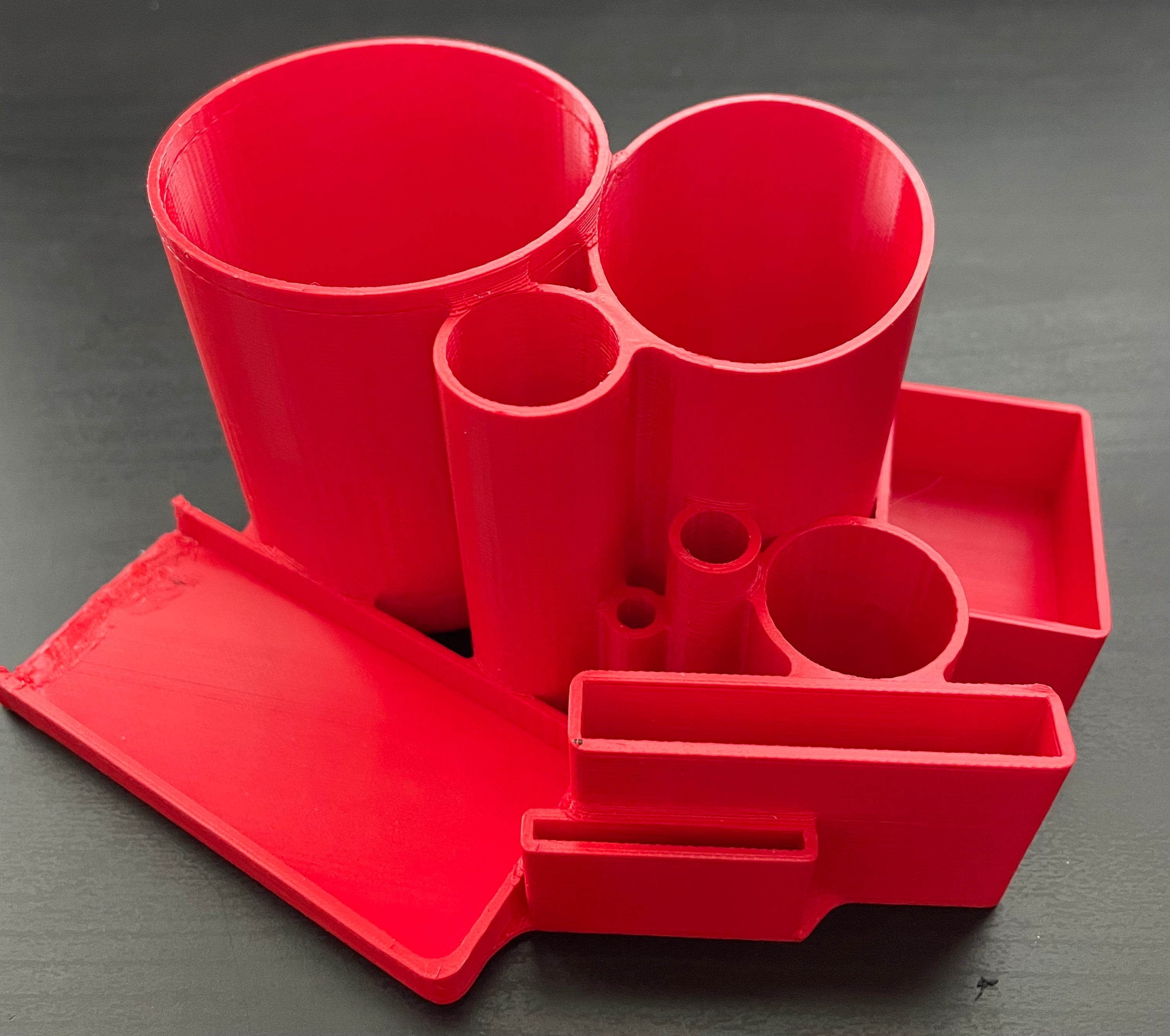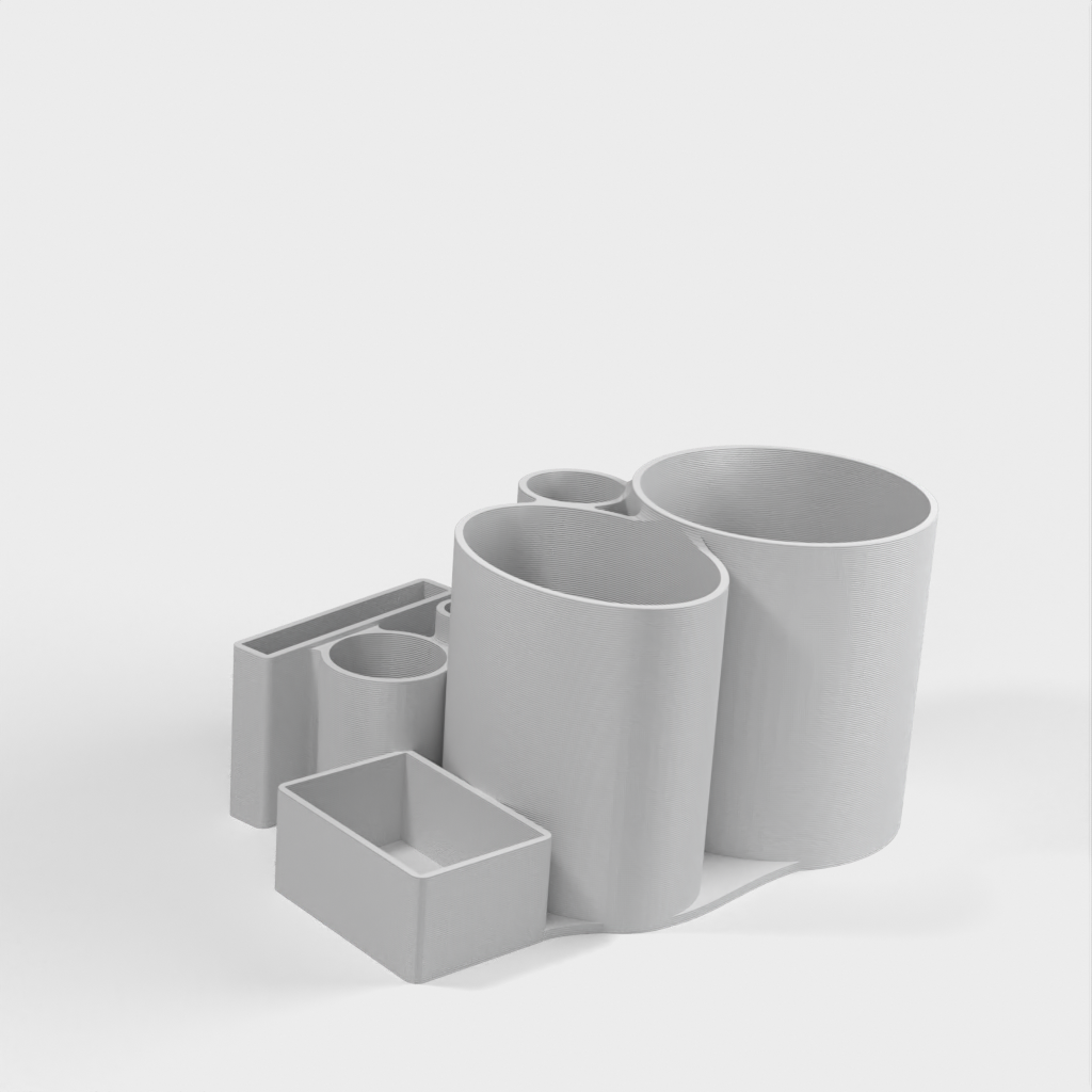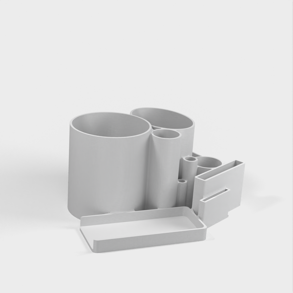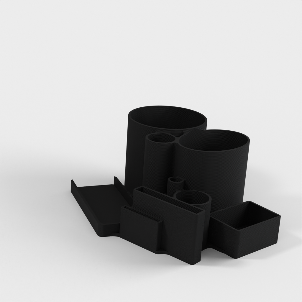 Een gereedschaphouder en organizer die ik heb ontworpen om al mijn gereedschap in op te bergen. Hij past comfortabel naast de printer. Hij is compatibel met deze spuitmondhouder: https://www.prusaprinters.org/prints/57441-nozzle-organizer. Gereedschap zoals spuitmondjes, kwasten, lijm, tangen, schroevendraaiers, inbussleutels, microSD-kaarten, SD-kaarten en lappen kunnen allemaal in deze houder worden opgeborgen. Het zorgt voor eenvoudige en nette opslag en toegang tot je benodigde gereedschap.