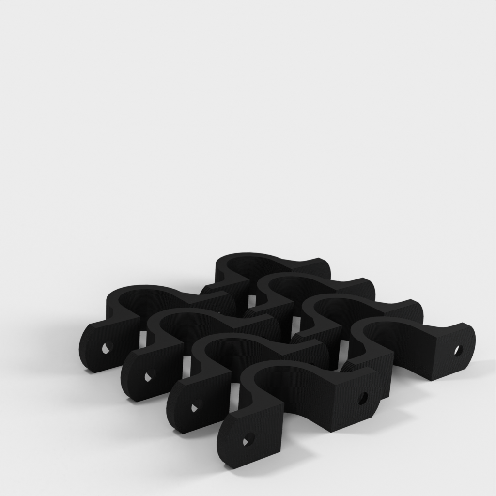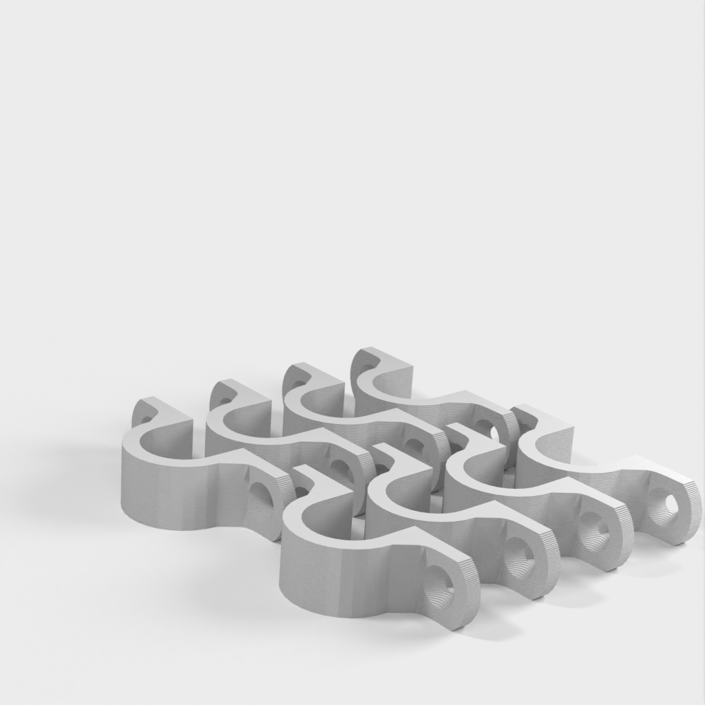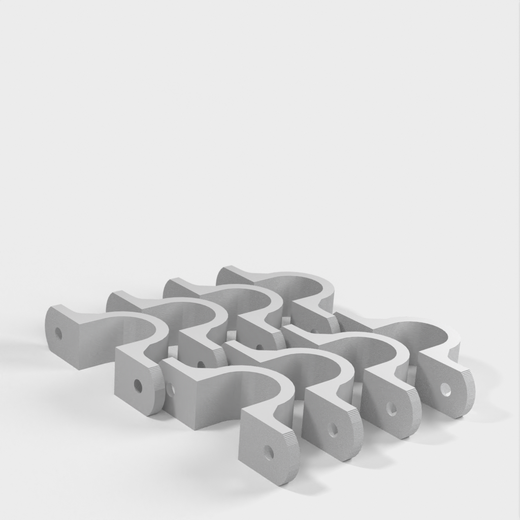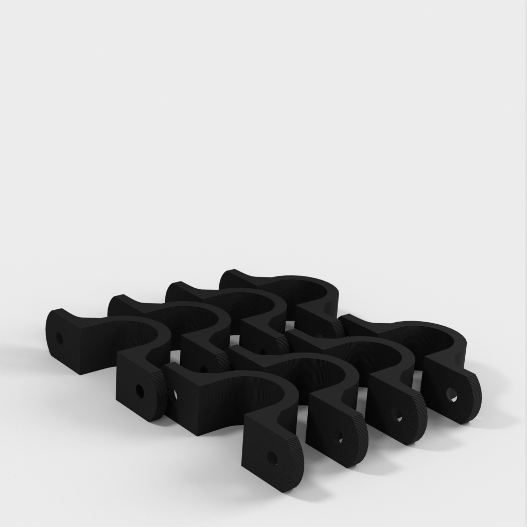 Dit is een kabelklem die is ontworpen om je kabel netjes en georganiseerd op te hangen aan het plafond in je werkplaats. De clip is verstevigd bij de 90-graden bocht voor extra stevigheid. De bevestigingsgaten zijn ontworpen voor standaard gipsplaatschroeven en zijn verzonken.