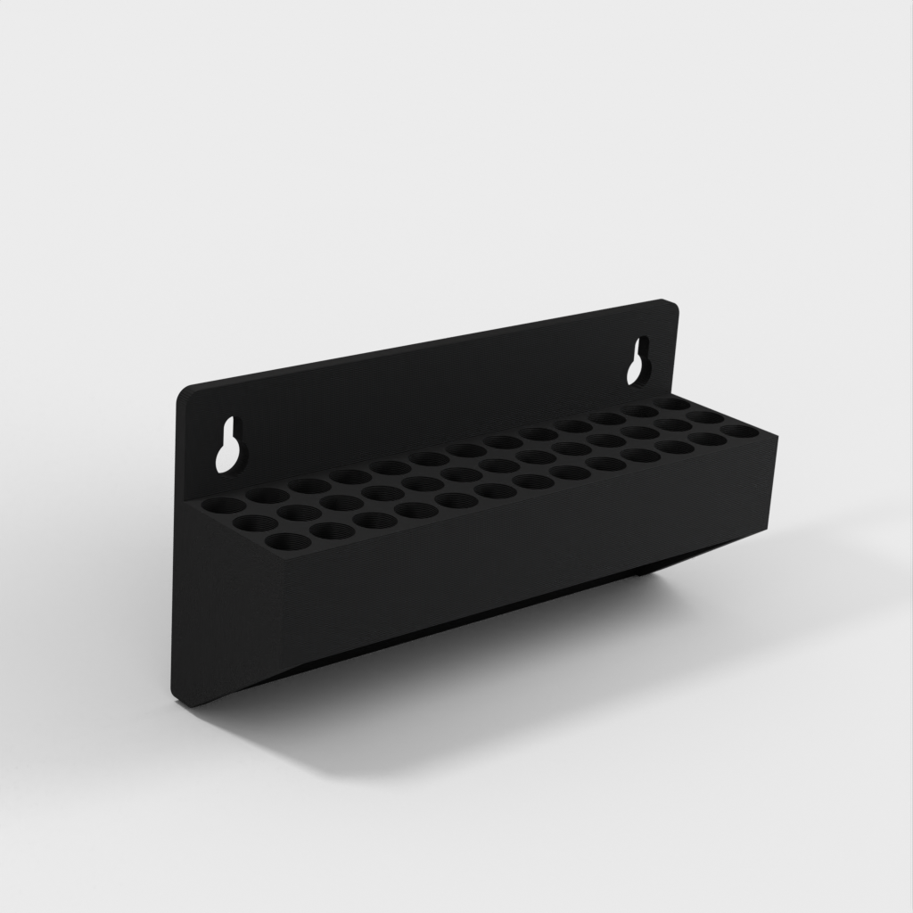 Wandgemonteerde schroevendraaierbithouder, ontworpen voor maximaal 39 bits. Er zijn twee modellen beschikbaar, kies tussen een vast model of een hangend model, afhankelijk van uw behoeften.