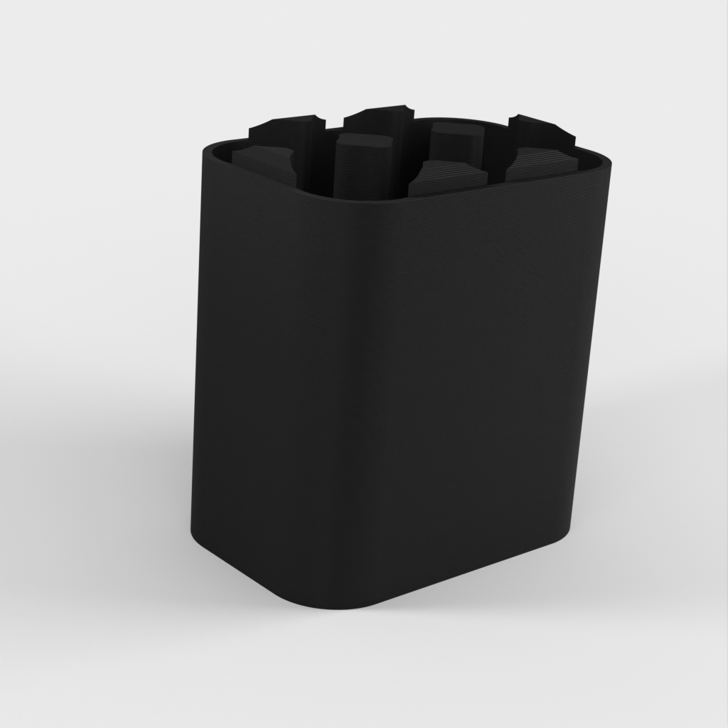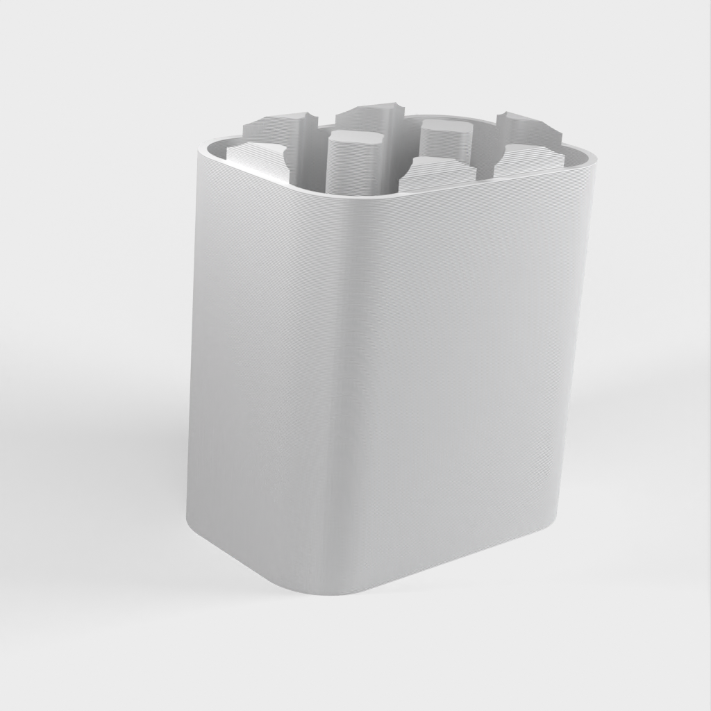 Een aanpasbare batterijhouder om batterijen in op te bergen tijdens het reizen.