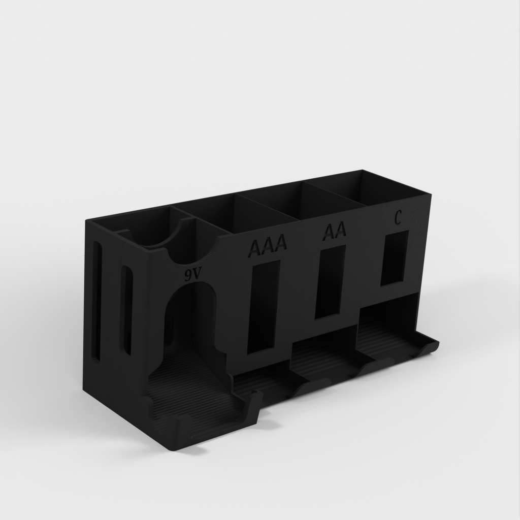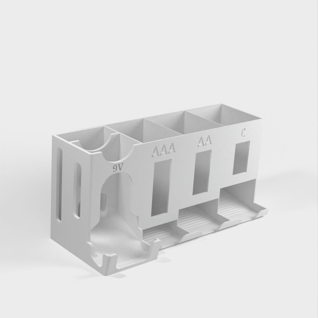 Bewaar uw AA-, AAA-, C- en 9-voltsbatterijen gemakkelijk in deze houder.