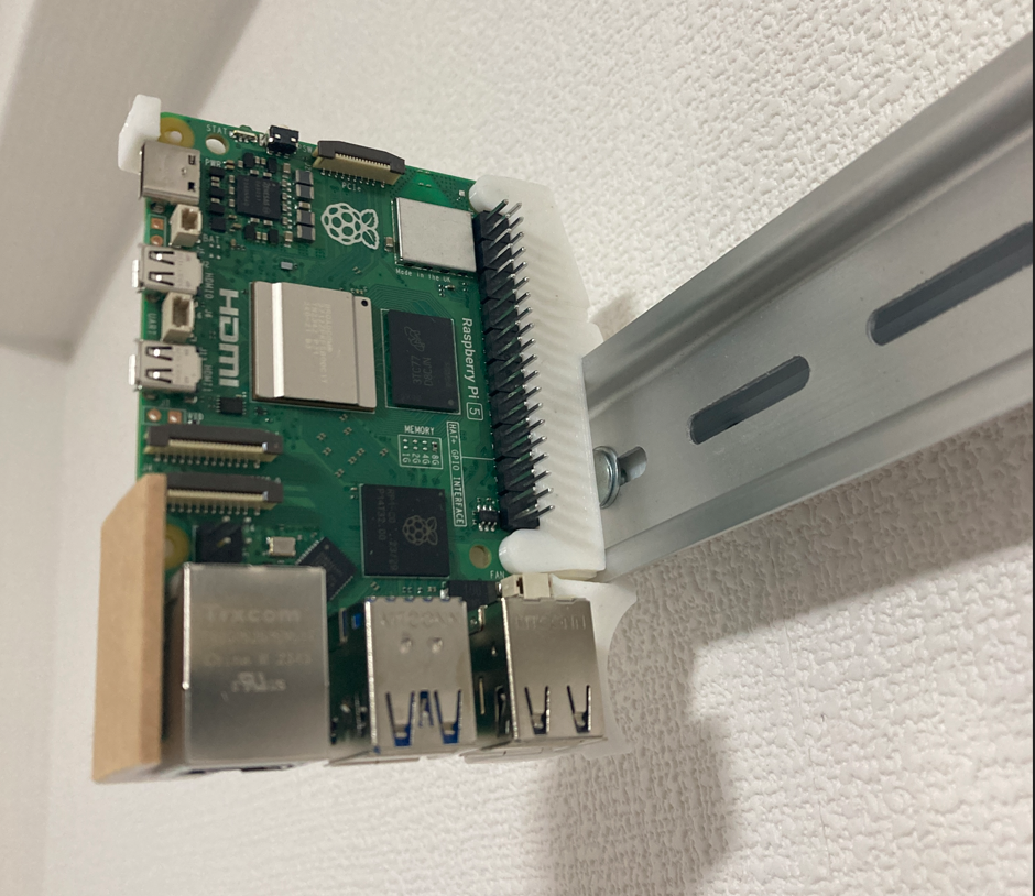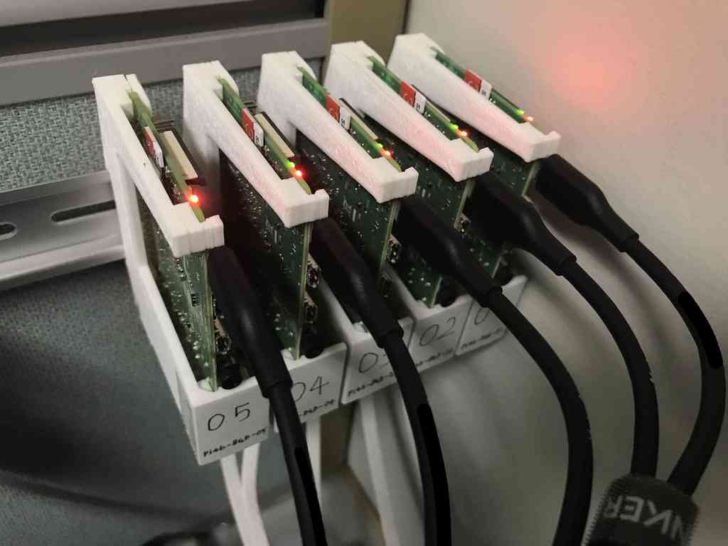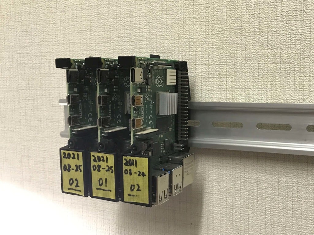 De beugel, die uitsluitend uit 3D-geprinte onderdelen bestaat, zorgt voor een lichte, maar robuuste montage van uw apparaat. Deze constructie draagt bij aan een georganiseerde en ruimtebesparende opstelling, wat ideaal is als u uw Raspberry Pi wilt integreren in bestaande systemen met DIN-rails.
