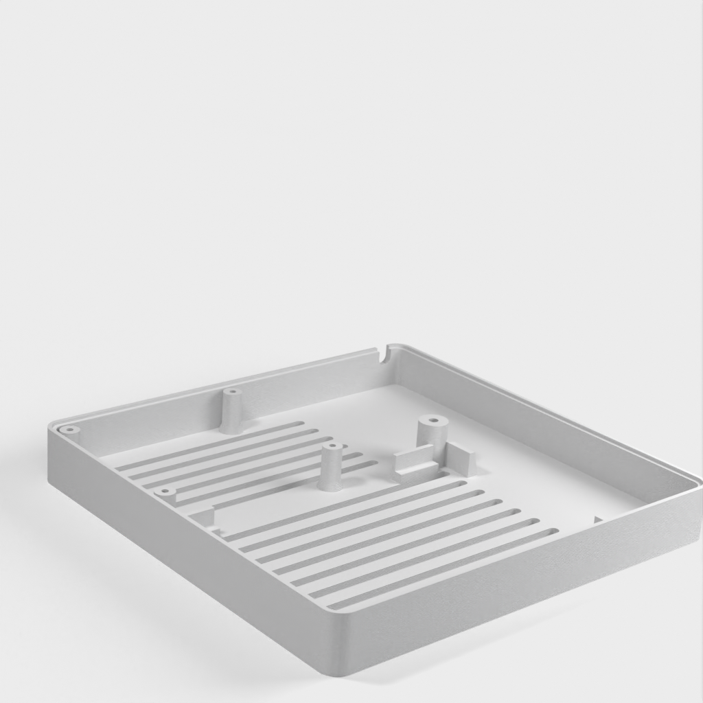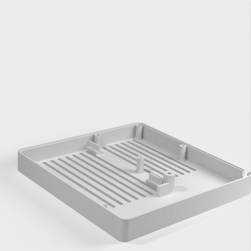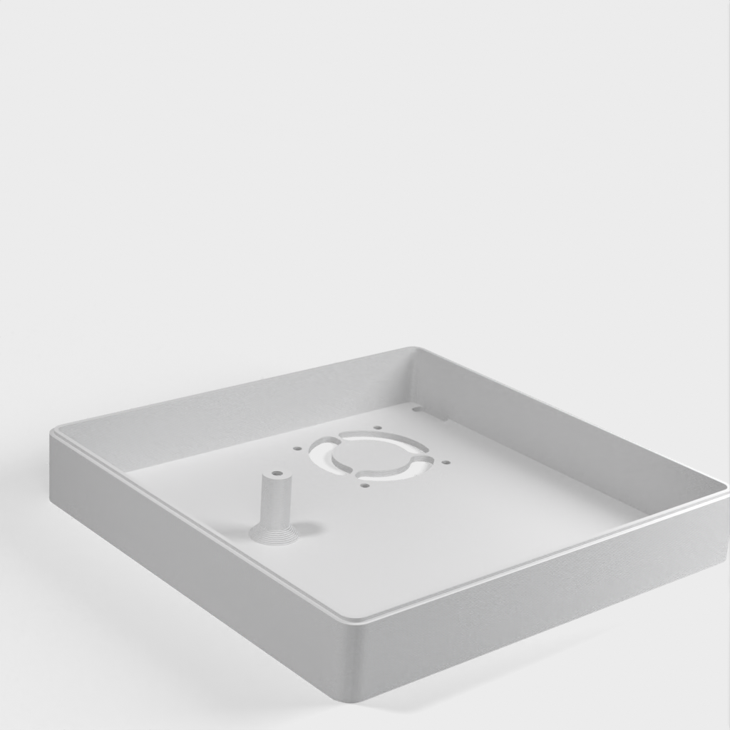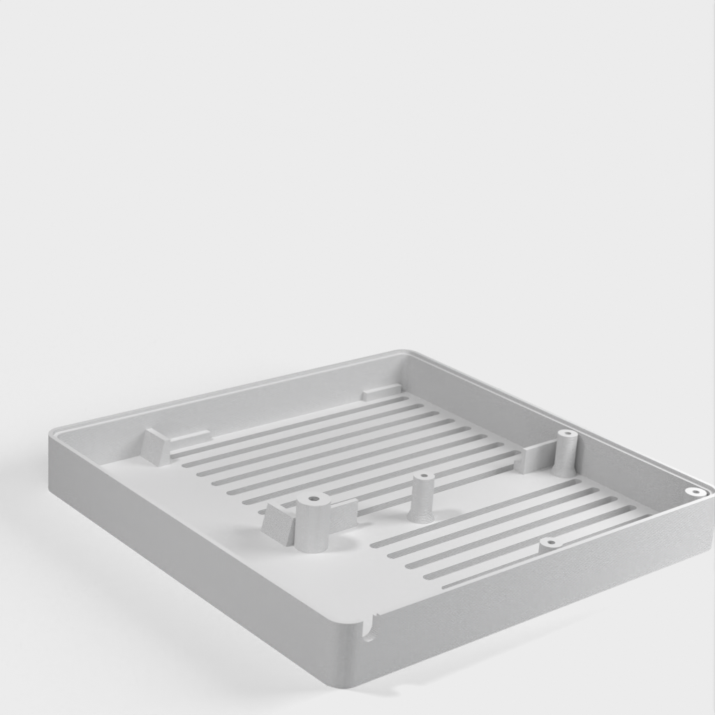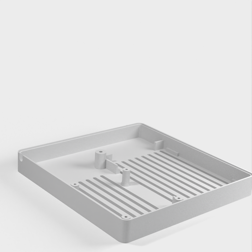 Personaliseerde doos voor Domoticz met Raspberry Pi, Pi Drive, RFX.com, Aeon-stick z wave. Op de bovenklep moet een 40 mm ventilator worden gemonteerd. Vergeet niet om pads onder de box te plaatsen voor optimale koeling. Er zijn wijzigingen aangebracht volgens de technische tekeningen, waaronder het veranderen van de locatie van de gaten van de Raspberry en het verhogen van de Raspberry-tafel. Een deel van het deksel is dunner gemaakt om de LED-status zichtbaar te maken door transparant materiaal.