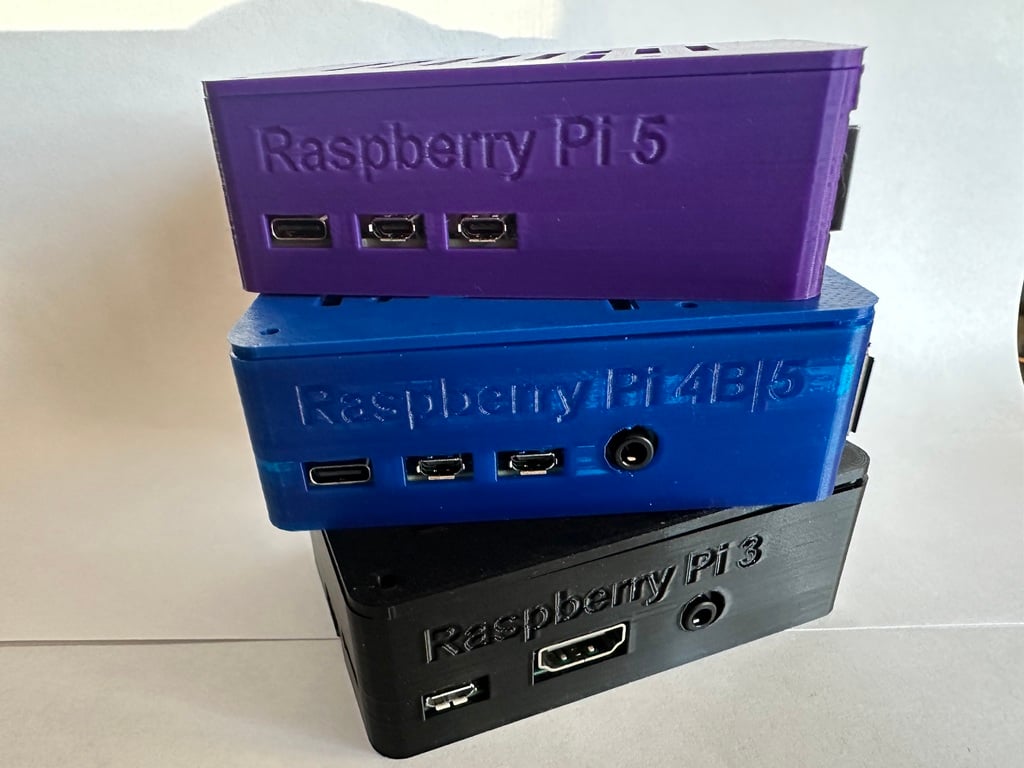 Een multifunctionele case voor Raspberry Pi modellen 5, 4B en 3B. Deze case heeft een aantal opties, waaronder ruimte voor een actieve koeler voor de Raspberry Pi 5. Er zijn ook verschillende cover opties voor alle modellen, waaronder covers met en zonder bevestigingspunten voor een 30mm of 40mm fan. Details en extra opties zijn te vinden op https://www.thingiverse.com/thing:6242465 en https://www.thingiverse.com/thing:6260580.