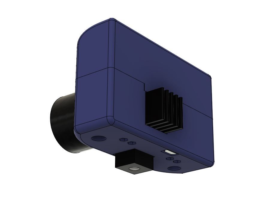 De camerabehuizing kan worden afgesloten met twee 3 mm plaatschroeven. Er zijn verschillende .stl-bestanden voor de onderkant, afhankelijk van de gewenste toegang. Er zijn ook enkele versies met een groter lensgat voor grotere C-mount lenzen.