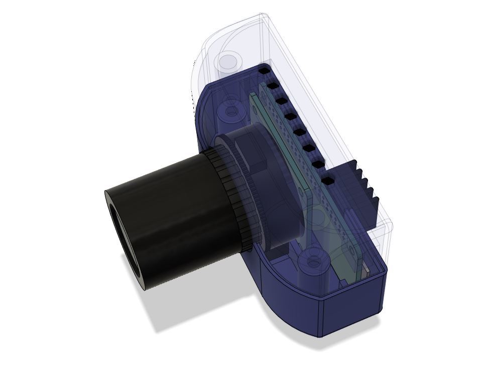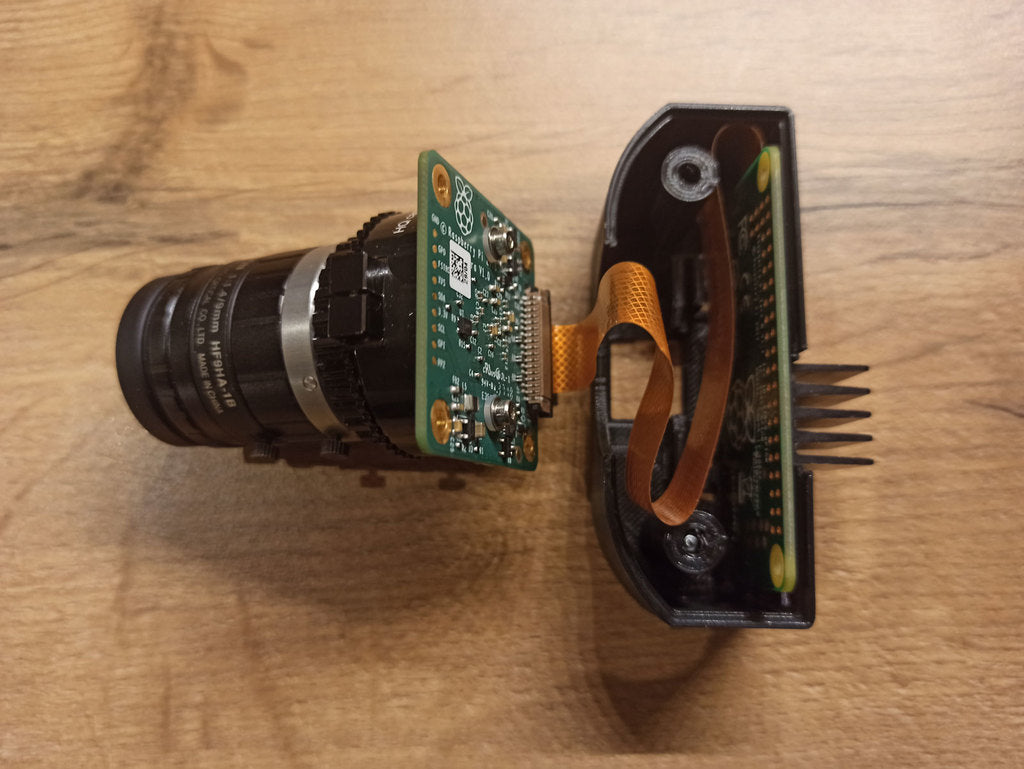 Dit is een slanke camerabehuizing voor een Raspberry Pi Zero (W) met de nieuwe hoogwaardige camera V1.0. De camerabehuizing is ontworpen om een Pi Zero met CPU-koeler veilig in onder te brengen. De toegang tot GPIO-poorten is gemaximaliseerd. De originele 1/4' UNC-bevestiging van de cameramodule is behouden en alle interne onderdelen zijn zonder schroeven gemonteerd.
