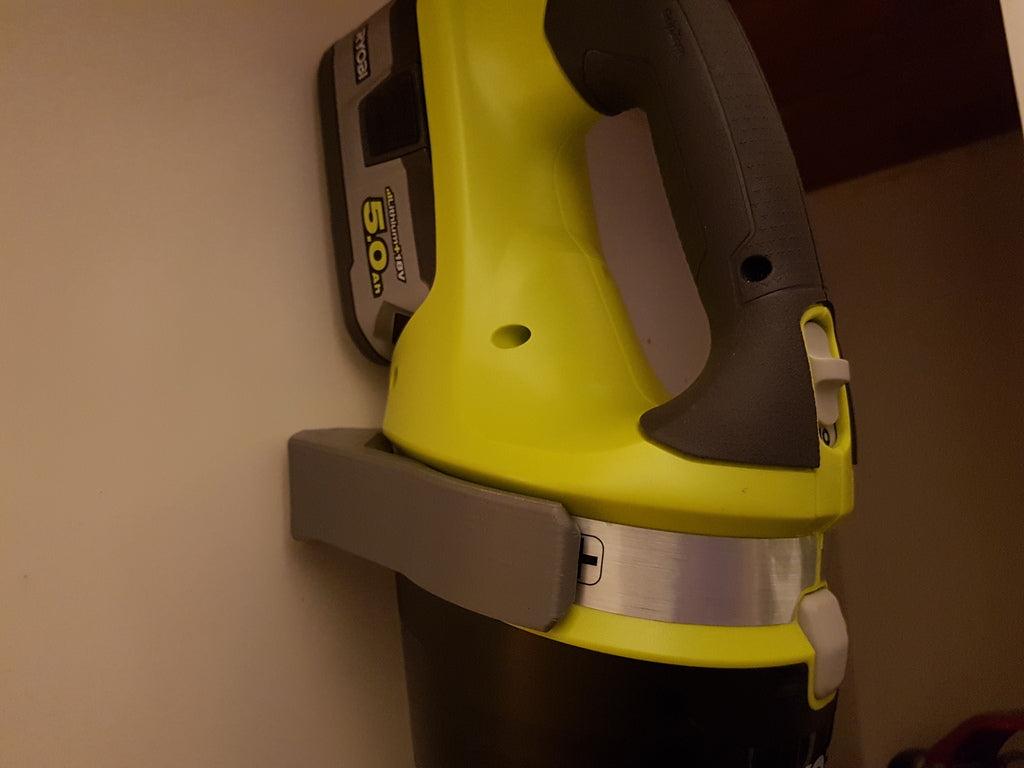 Een stevige wandbeugel voor de Ryobi One+ stofzuiger.