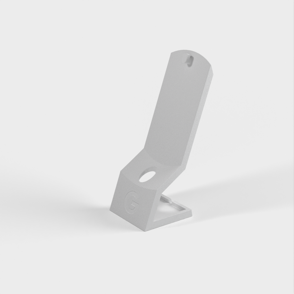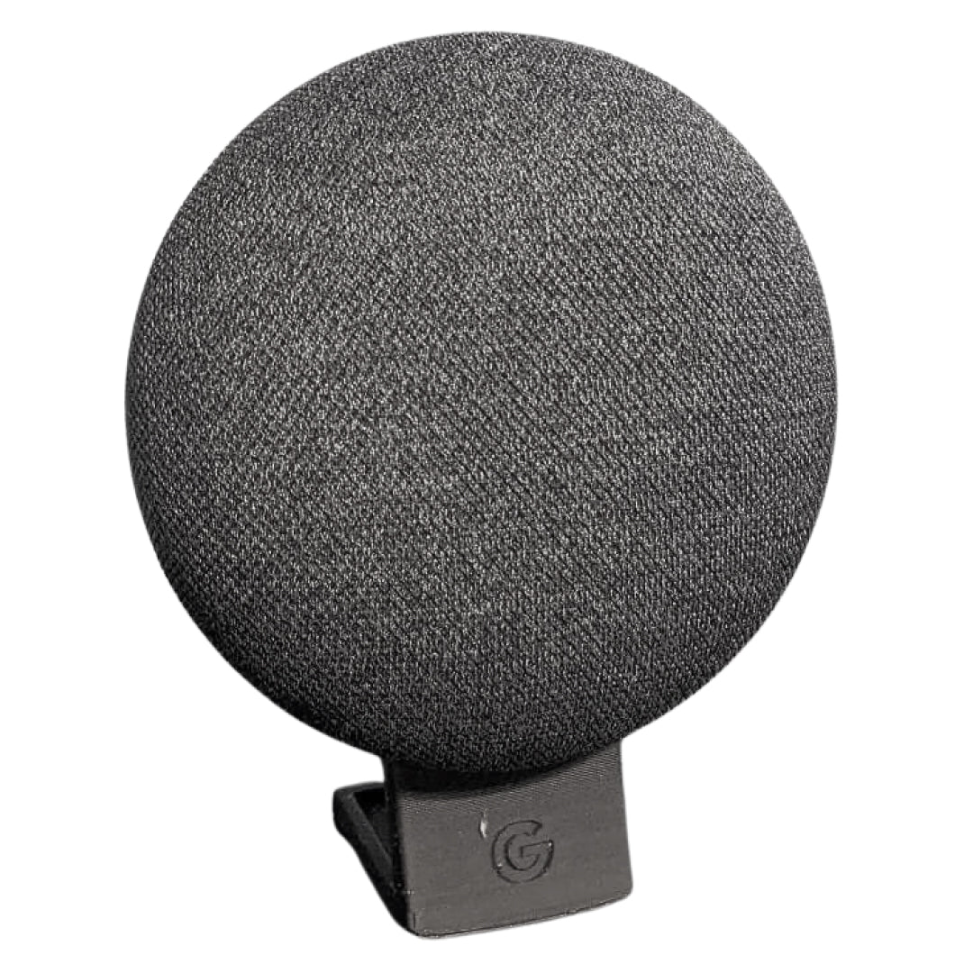 Een minimalistische standaard die je Google Nest Mini 2nd Generation in een rechtopstaande positie op een bureau of plank zet.