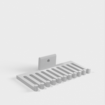 Houder voor kabels die met een schroef kunnen worden vastgezet. De kabelhouder heeft de vorm van een kam, waarbij het aantal kamtanden, de hoogte, breedte enz. naar wens kan worden aangepast. Veel verschillende kabels kunnen gemakkelijk worden georganiseerd om een opgeruimde werkruimte te creëren.