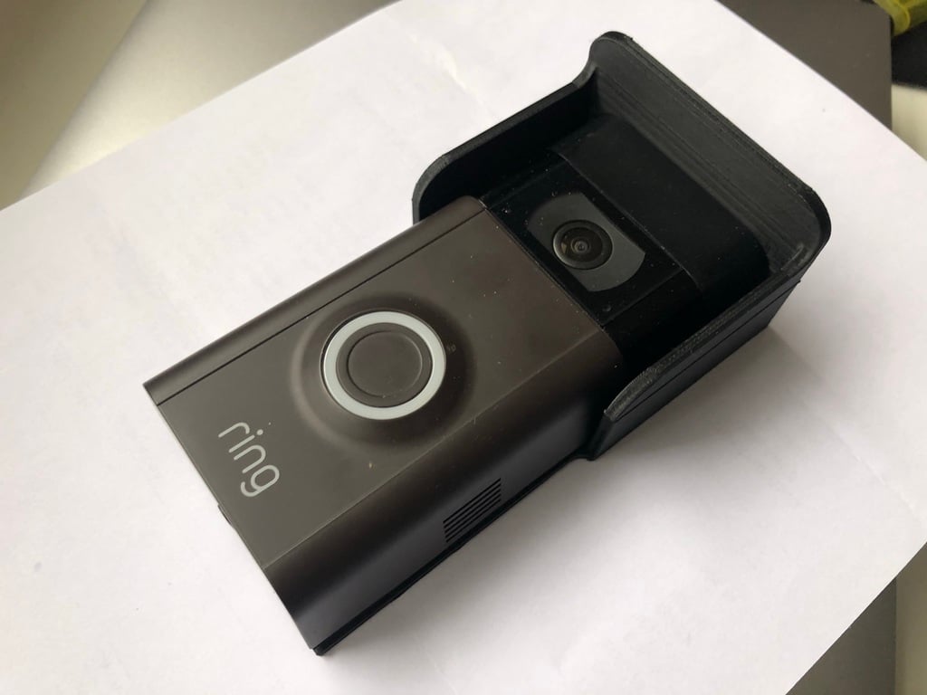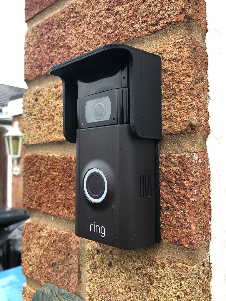 Weerscherm voor Ring Doorbell 2. Past direct achter de deurbel met behulp van de originele bevestigingspunten en biedt bescherming tegen regen zonder het zicht te belemmeren.