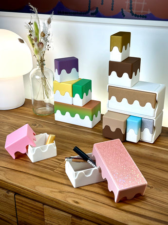 Deze veelzijdige, stapelbare containers zijn verkrijgbaar in kleine, middelgrote en grote maten, perfect voor organisatie op uw bureau of planken. Het gegolfde ontwerp zorgt voor een moderne uitstraling, terwijl de veilige deksels de inhoud beschermen. Gebruik ze voor het opbergen van gereedschap, hobbyartikelen of kleine huishoudelijke artikelen.