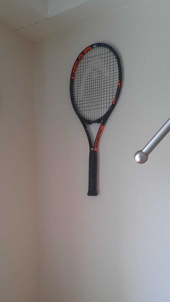 Dit is een kleine houder bedoeld voor je tennisracket. De houder kan direct aan de muur worden gemonteerd met behulp van 4 schroeven. Je kunt je tennisracket gemakkelijk in de houder plaatsen, waardoor je kamer opgeruimder en georganiseerder wordt.