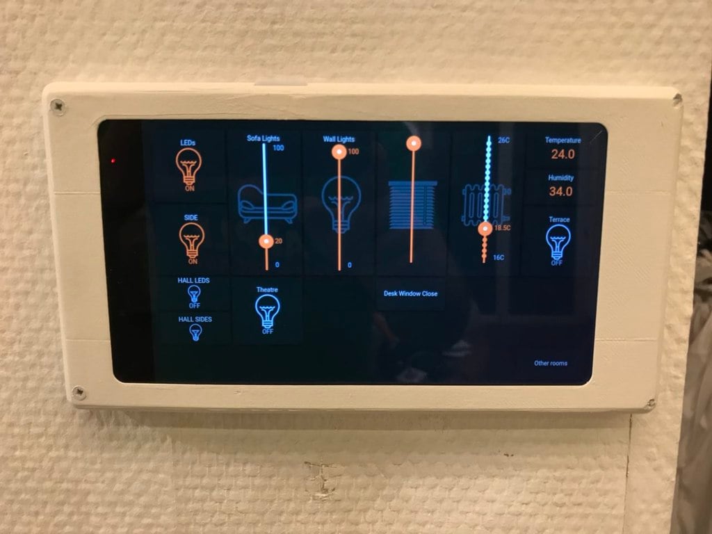 Deze wandhouder is ontworpen voor een Lenovo Tab7 Essentials 7" tablet, specifiek voor het TB-7304F model. Het omvat ruimte voor een microUSB binnenin en maakt het mogelijk om de tablet te gebruiken als een smart home afstandsbediening. De aan/uit-knop is gemakkelijk te bereiken aan de bovenkant voor eventuele herstarts of om de tablet te activeren.