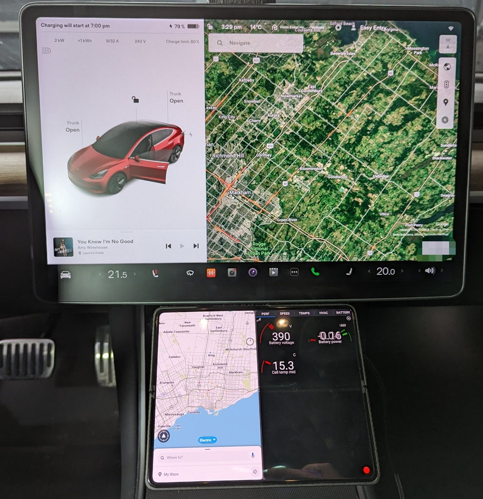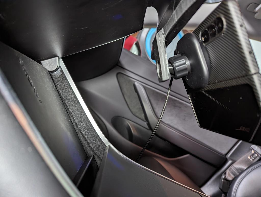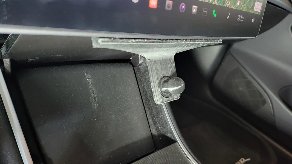 MagSafe-telefoonhouder voor Tesla Model 3/Y, die eenvoudig aan de achterkant van het scherm kan worden bevestigd met dubbelzijdige tape. Deze elegante houder blokkeert de opbergruimte niet, maar bedekt het luik dat normaal de originele telefoonhouder bedekt. Hij kan zowel met als zonder kogelgewricht worden gebruikt. Compatibel met Galaxy Fold 3 bij gebruik van een aangepaste hoes, zodat hij werkt met MagSafe-opladers, maar zou ook met andere MagSafe-telefoons moeten werken.