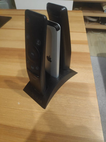 Deze praktische standaard is ontworpen om te helpen bij het creëren van orde en om uw belangrijkste bedieningselementen bij elkaar te houden. Het biedt ruimte aan twee Samsung-afstandsbedieningen (voor tv en soundbar) en een Apple TV 2e generatie afstandsbediening. Met deze houder zorgt u ervoor dat uw afstandsbedieningen altijd binnen handbereik en gemakkelijk te vinden zijn, waardoor u niet meer naar ze hoeft te zoeken.