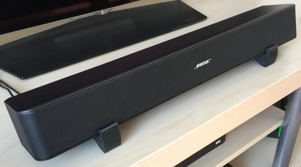 Stevige standaard voor een Bose Solo 5 soundbar, die ervoor kan zorgen dat het geluid niet direct op de luisteraar is gericht. De soundbar helt 15°, wat de geluidskwaliteit kan verbeteren, vooral als je dicht bij de soundbar bent of als deze op een lage tafel staat. Deze standaard biedt een ideale ervaring met je Bose Solo 5 soundbar.