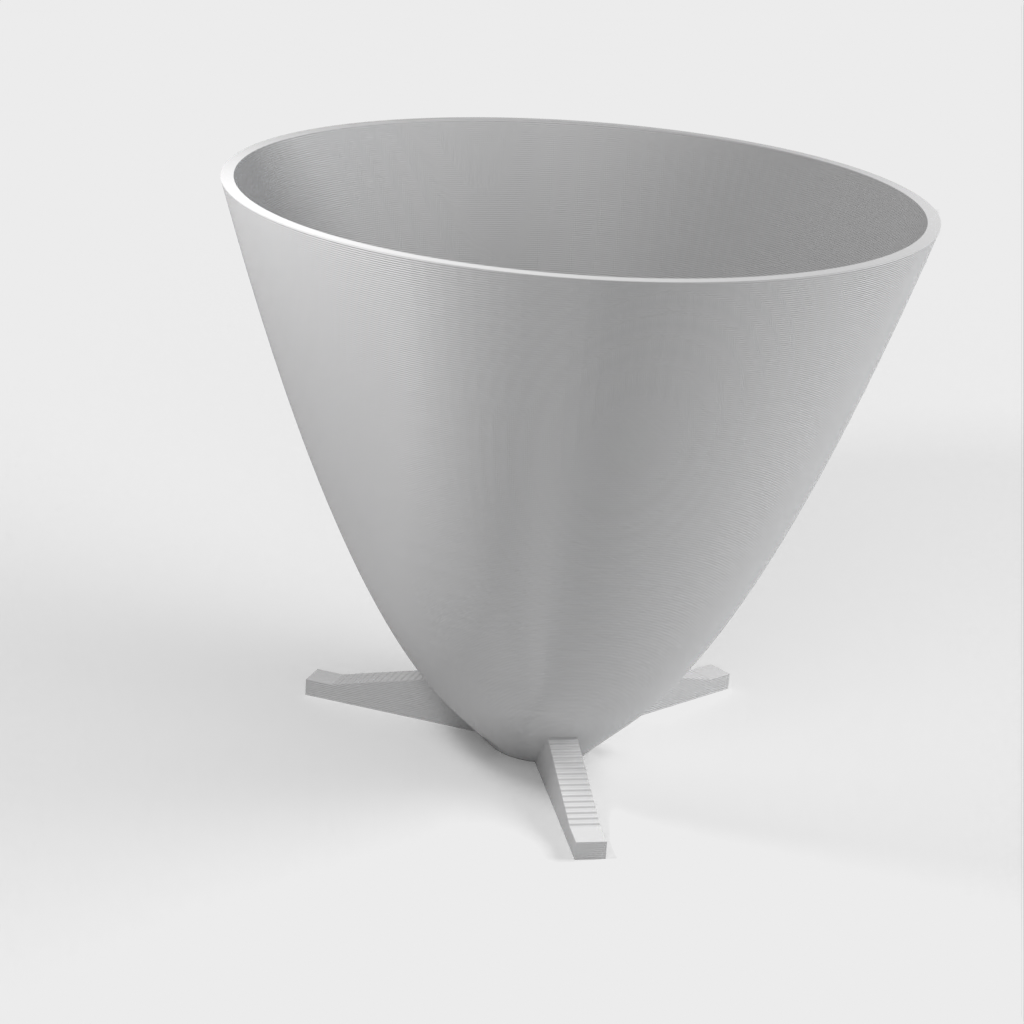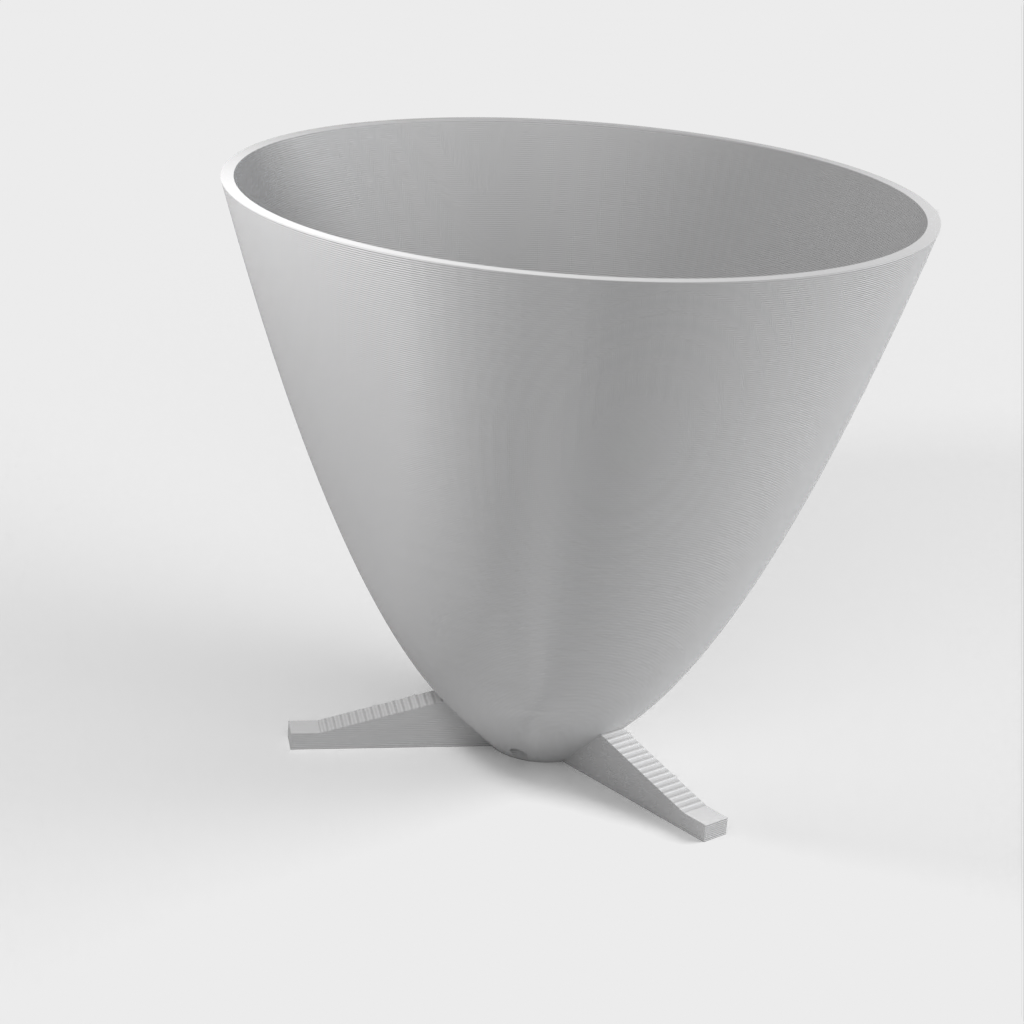 Dit is een parabolische bloempot met eigen poten en een onafhankelijke drainageplaat. Hij is ontworpen om zonder steunen geprint te worden. Hoewel het figuurtje is geprint met PLA, kun je met de juiste instellingen ook andere materialen gebruiken. Prusa filament wordt aanbevolen, maar mijn favoriete filament voor deze potten is Mukha de Fillamentum.