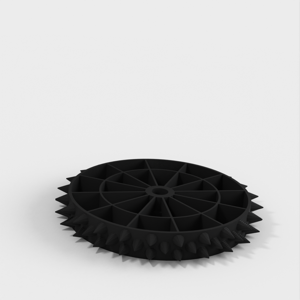 3D-geprinte terreinwielen met spikes voor Landroid robotmaaiers.