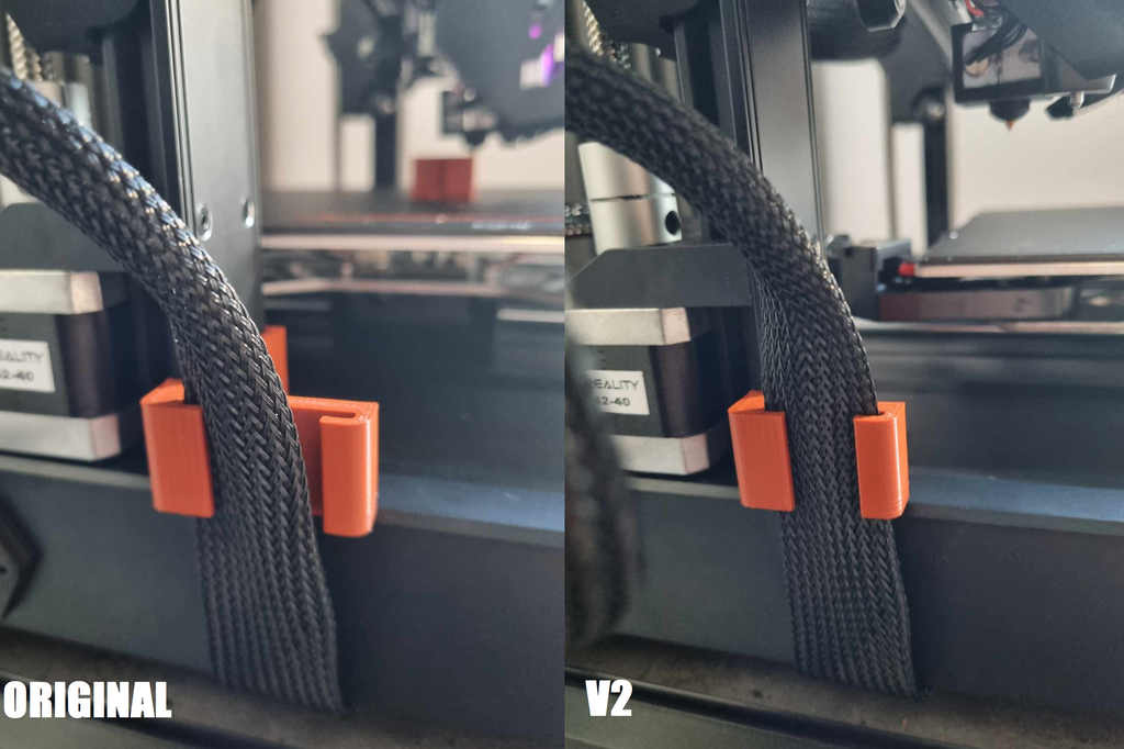De nieuwe kabelklem is 6 mm strakker dan de originele versie, wat zorgt voor een stevige kabelgrip, zodat de kabel strak zit zonder uit te puilen. Dit draagt bij aan een meer gestroomlijnde en veilige installatie van uw printer. Bovendien is de frameklem 1 mm breder, waardoor het gemakkelijker is om de houder te monteren en demonteren. Voor degenen die de voorkeur geven aan een iets lossere pasvorm, is er een alternatieve versie die 2 mm breder is, wat meer ruimte biedt voor de kabel en fungeert als een verstelbare draadklem.