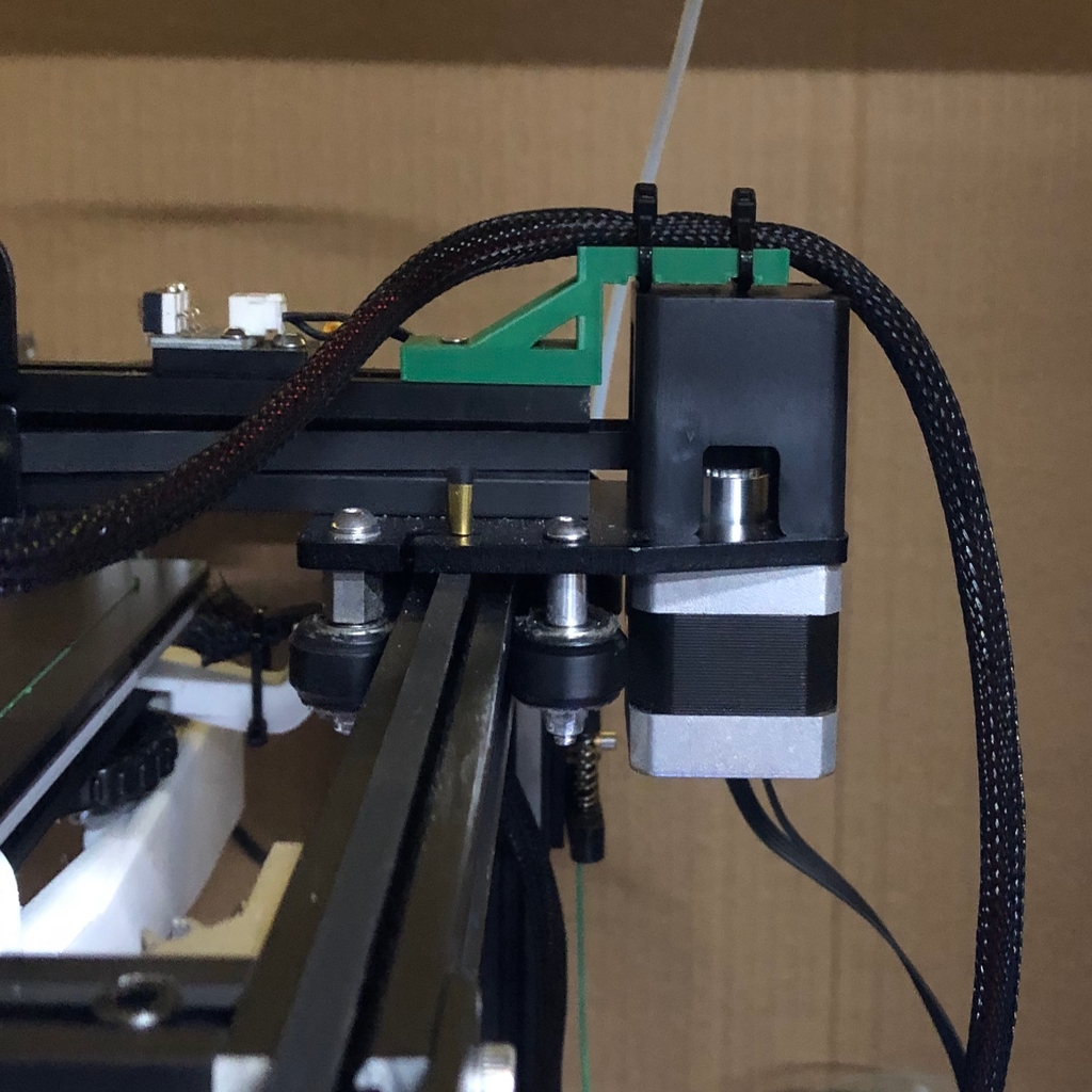 - Voorkomt dat kabels en filamentslangen vast komen te zitten in de stappenmotor.