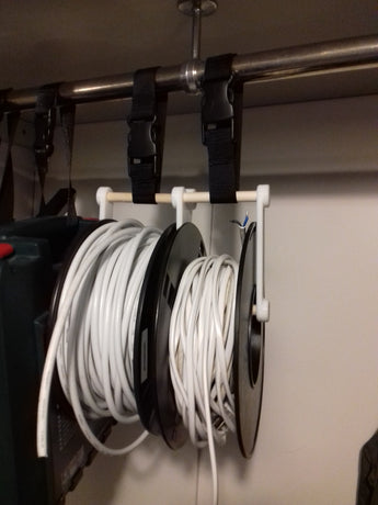 Deze filament spoel hanger is een slimme en praktische oplossing waarmee je lege filament spoelen kunt hergebruiken voor het organiseren. Het is ontworpen om efficiënt een reeks materialen op te slaan, zoals draden, kabels, touw en garen, en fungeert dus als een ideale oplossing om je snoeren en kabels bij te houden. Met dit slimme hergebruik kun je eenvoudig een meer georganiseerde werkruimte creëren en zowel hobbyartikelen als elektrische installaties overzichtelijk houden. Een discrete 2 mm fillet aan elk uiteinde draagt bij aan de stabiliteit van het product en maakt de verwerking van de opgeslagen materialen moeiteloos.