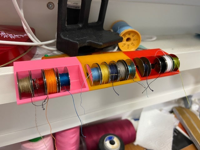 Deze garenkloshouder is de perfecte oplossing voor het georganiseerd opbergen van je garenklossen. De houder is speciaal ontworpen om op de IKEA Mosslanda-plank te passen en helpt je om orde te scheppen in je werkruimte, terwijl je tegelijkertijd een duidelijk overzicht hebt van de garenkleuren. Dankzij de eenvoudige klikfunctie kan de houder eenvoudig in je bestaande interieur worden geïntegreerd, waardoor het een praktische en stijlvolle toevoeging is aan je creatieve ruimte.