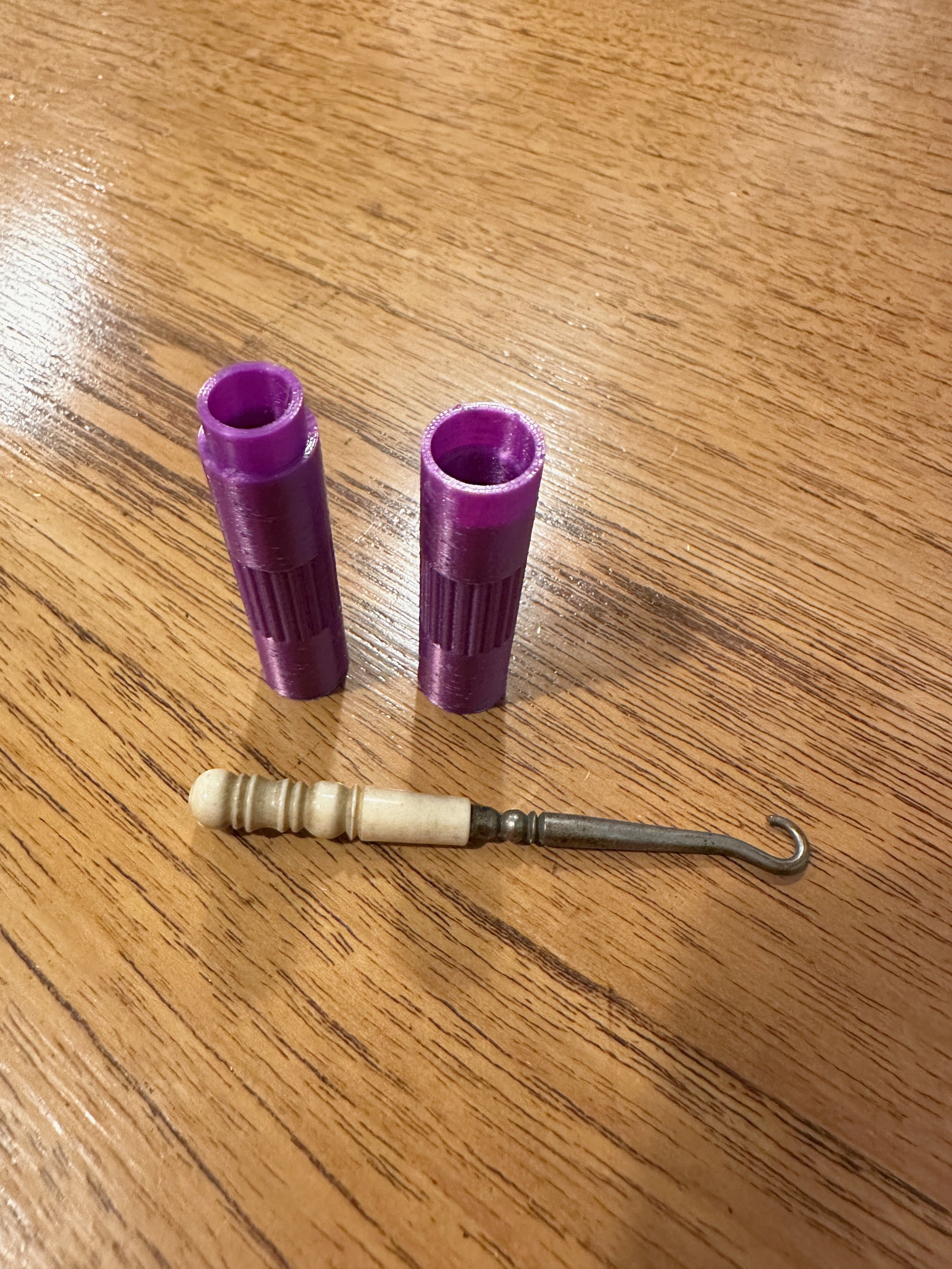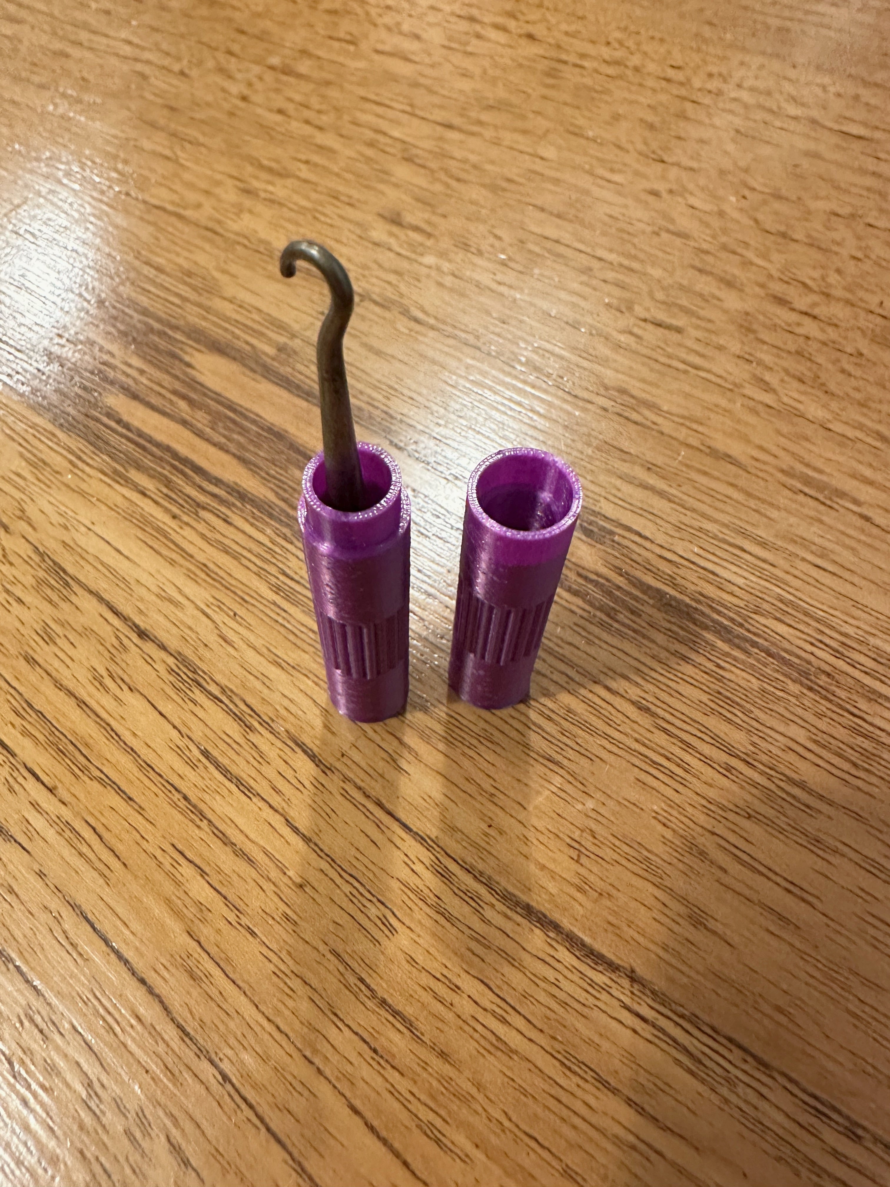 Bewaar je garen- en knopenhaakjes veilig en stijlvol met deze decoratieve tas. Hij meet 90 mm in lengte en 12 mm in diameter, waardoor hij perfect is voor het opbergen van voorwerpen met een diameter tot 7,5 mm. Het maakt gebruik van een praktisch push-fit ontwerp, dat ervoor zorgt dat je haaknaald of knopenhaakje op zijn plek blijft. Ideaal voor handwerkenthousiastelingen die hun gereedschap georganiseerd en gemakkelijk toegankelijk willen houden.