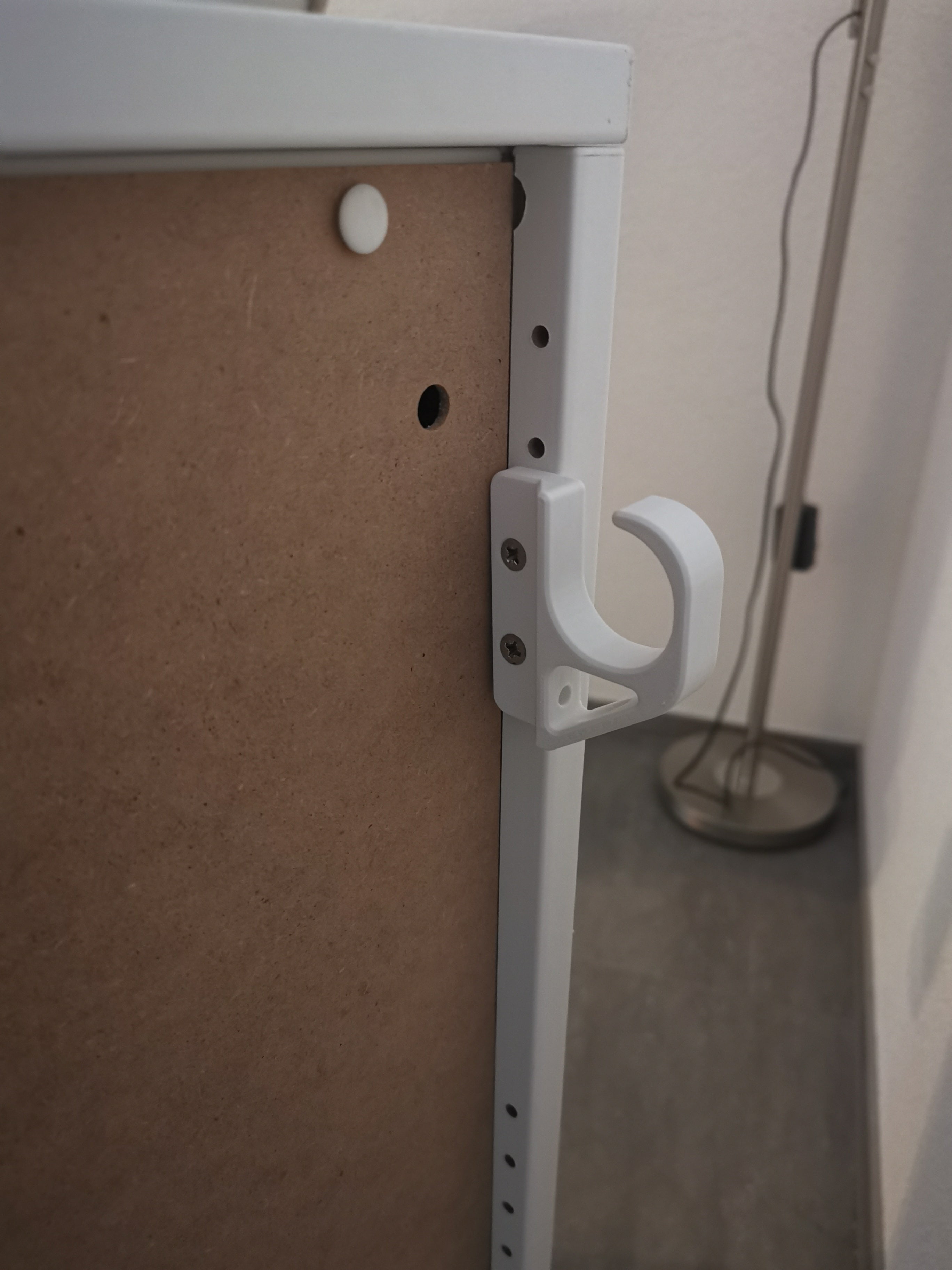 De haak is specifiek aangepast aan de achterkant van IKEA Platsa-meubels, waarbij de gatafstand precies past voor een probleemloze integratie. Dit maakt het gemakkelijk om een opgeruimde uitstraling rond uw meubels en apparatuur te creëren.