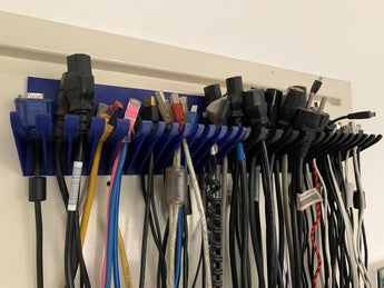 Het ontwerp omvat een lichte helling naar achteren en een fijne opwaartse curve aan het uiteinde, die ervoor zorgt dat de kabels veilig op hun plaats blijven. De gleuven aan de voorkant zijn ontworpen om iets breder te zijn, waardoor u uw kabels gemakkelijk en moeiteloos kunt plaatsen totdat ze stevig vastzitten. Voor een permanente en stabiele oplossing is de kabelhouder voorzien van gaten voor M4 schroeven, waardoor wandmontage eenvoudig en robuust is.