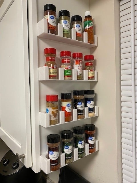 Organiseer dit keukent met deze praktische kruidenrek, dat eenvoudig aan de zijkant van de meeste kasten kan worden gemonteerd. Het is ontworpen om te passen bij populaire kruidencontainers zoals Great Value, Stonemill en McCormick, waardoor het een ideale oplossing is voor zowel kleine als grote keukens.