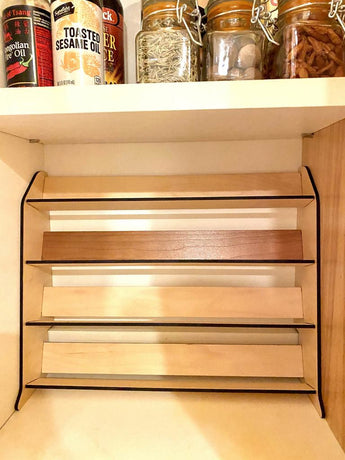 Deze praktische kruidenplank is ontworpen om de ruimte in je keukenkast te optimaliseren en je kruiden georganiseerd en gemakkelijk toegankelijk te houden. De plank is speciaal ontworpen voor standaard potten van 2 inch, waardoor een uniforme en opgeruimde uitstraling in je keuken ontstaat.