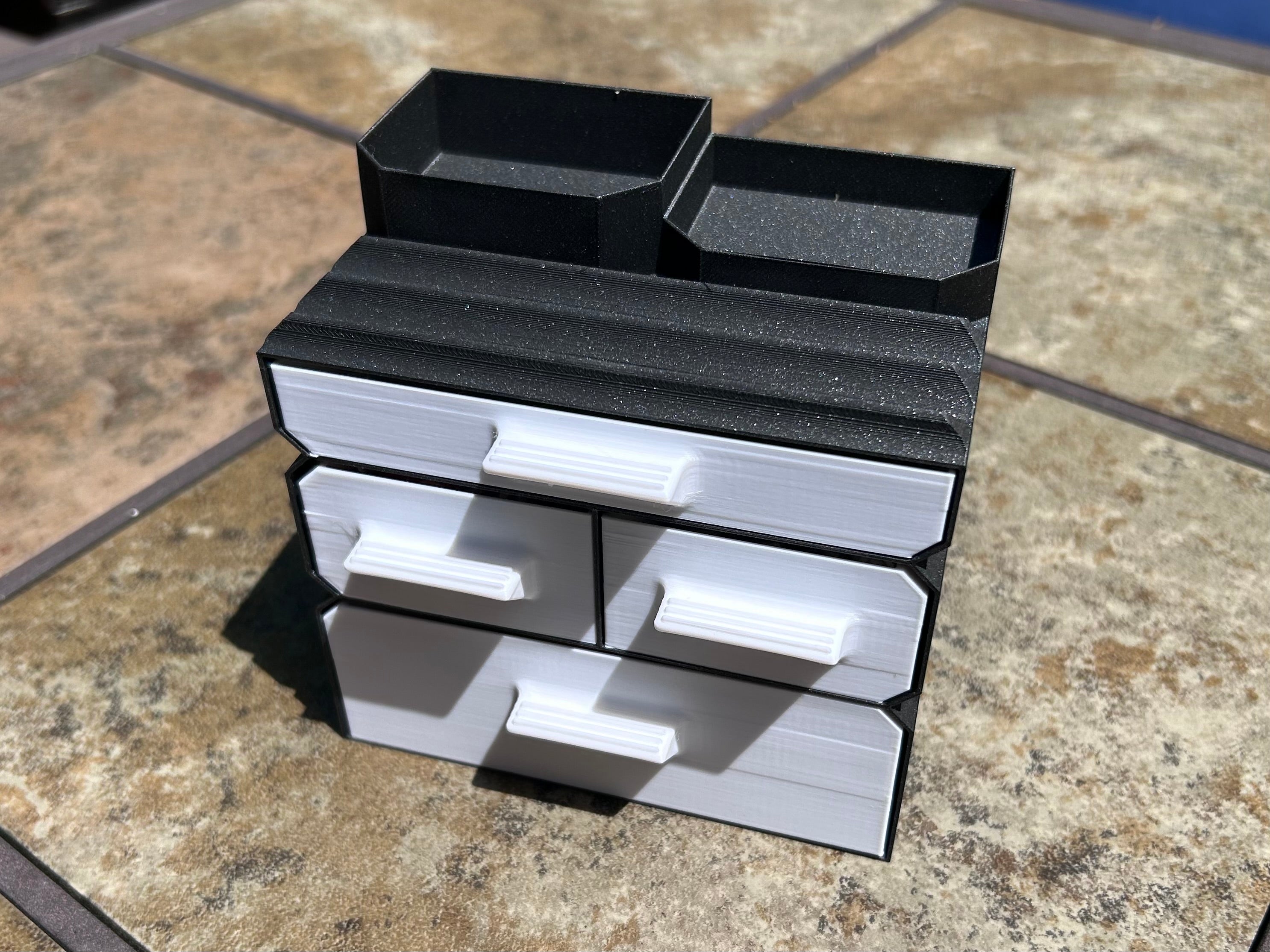 Mini Desk Organizer is de ideale oplossing voor efficiënte opslag van uw bureau. Met drie verschillende ladeformaten kunt u eenvoudig kleine spulletjes sorteren en opslaan, van paperclips tot sticky notes, en de twee houders voor pennen/potlood zorgen ervoor dat uw schrijfmaterialen altijd binnen handbereik zijn. De twee bovenste opbergvakken bieden extra ruimte om uw kantoorbenodigdheden georganiseerd en binnen handbereik te houden.
