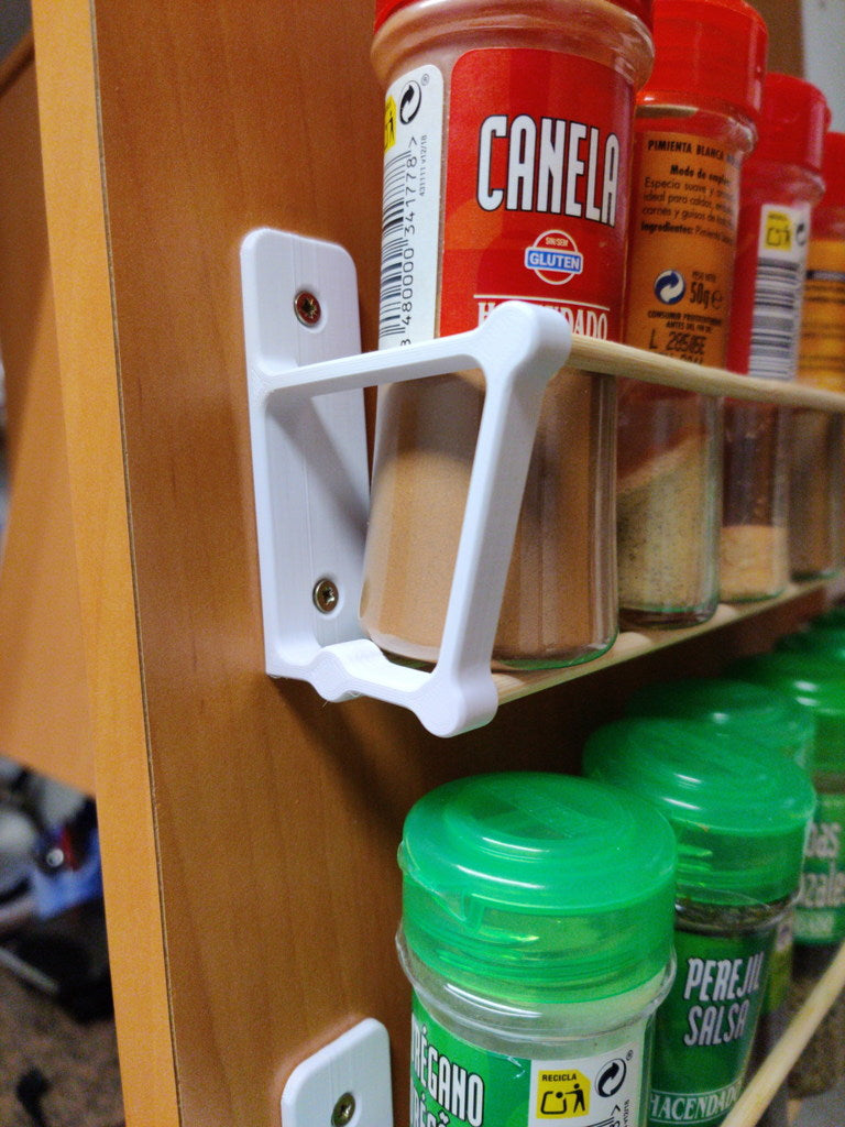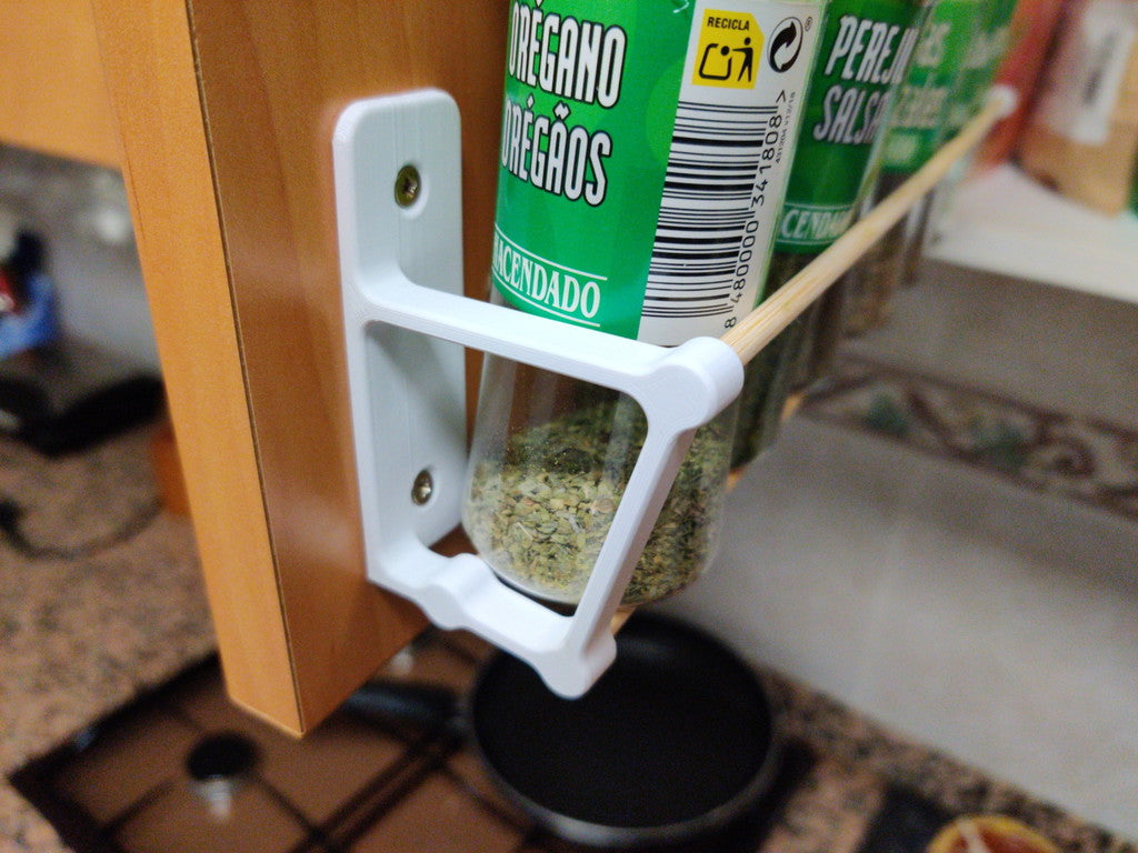 Dit minimalistische kruidenrek is ontworpen voor efficiënte opslag van je kruiden en specerijen in de keuken. Met de nieuw toegevoegde schroefgaten kan het eenvoudig aan de muur worden gemonteerd, wat ruimte bespaart op je keukenkasten en het makkelijker maakt om te vinden wat je nodig hebt tijdens het koken.