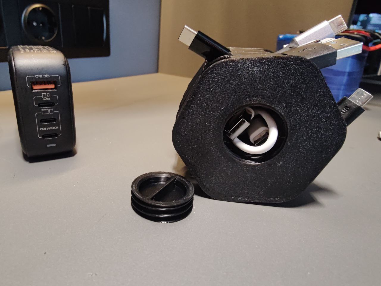 De houder is robuust en zorgt ervoor dat je kabels netjes opgerold en op hun plaats blijven. Het modulaire ontwerp stelt je in staat om de houder aan te passen aan je specifieke behoeften, waardoor deze ideaal is voor verschillende opstellingen. Of het nu op je thuiskantoor, naast je bed of in de hobbyruimte is, deze charging cable holder helpt je om je kabels georganiseerd en gemakkelijk toegankelijk op te bergen. Zeg vaarwel tegen kabelwarboel en geniet van een functioneler en overzichtelijker gebied met deze praktische cord holder.