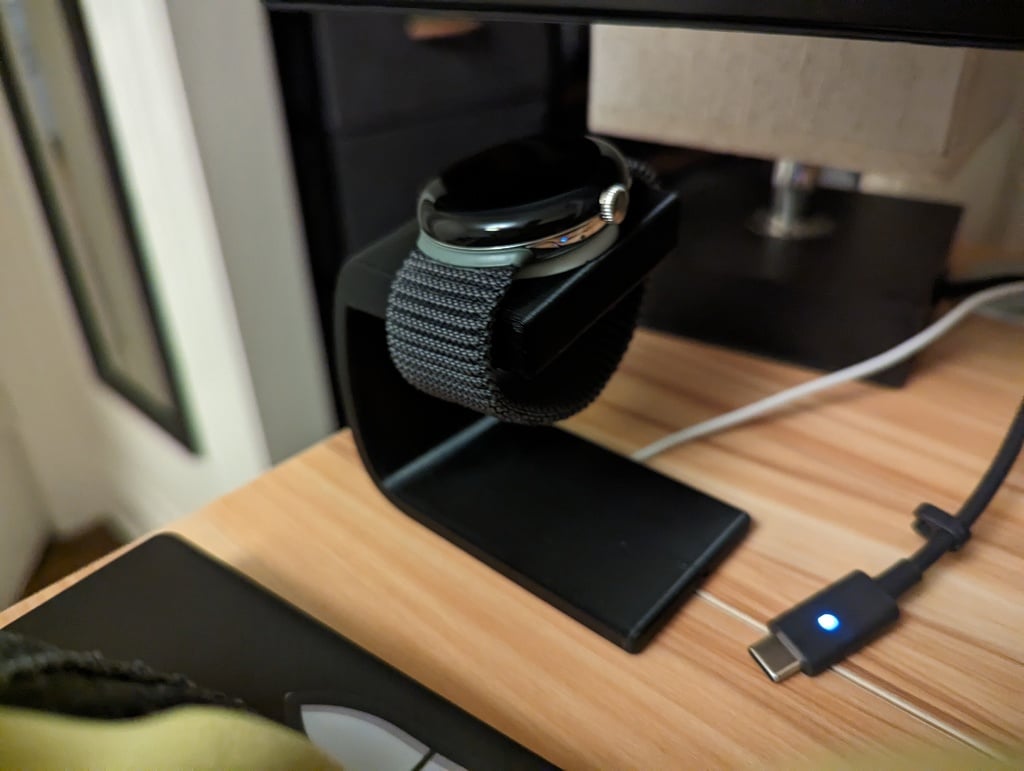 De standaard integreert een veilige ruimte voor de inductielader, en een ingebouwde kabelhouder zorgt voor verborgen kabelbeheer, waardoor rommel op je bureau of nachtkastje wordt verminderd. Dit maakt de standaard tot een effectieve cord holder. Het is specifiek aangepast om horloges met rekbare bandjes te kunnen herbergen, maar het ontwerp zorgt ervoor dat het optimaal werkt met alle Pixel Watch bandtypes.