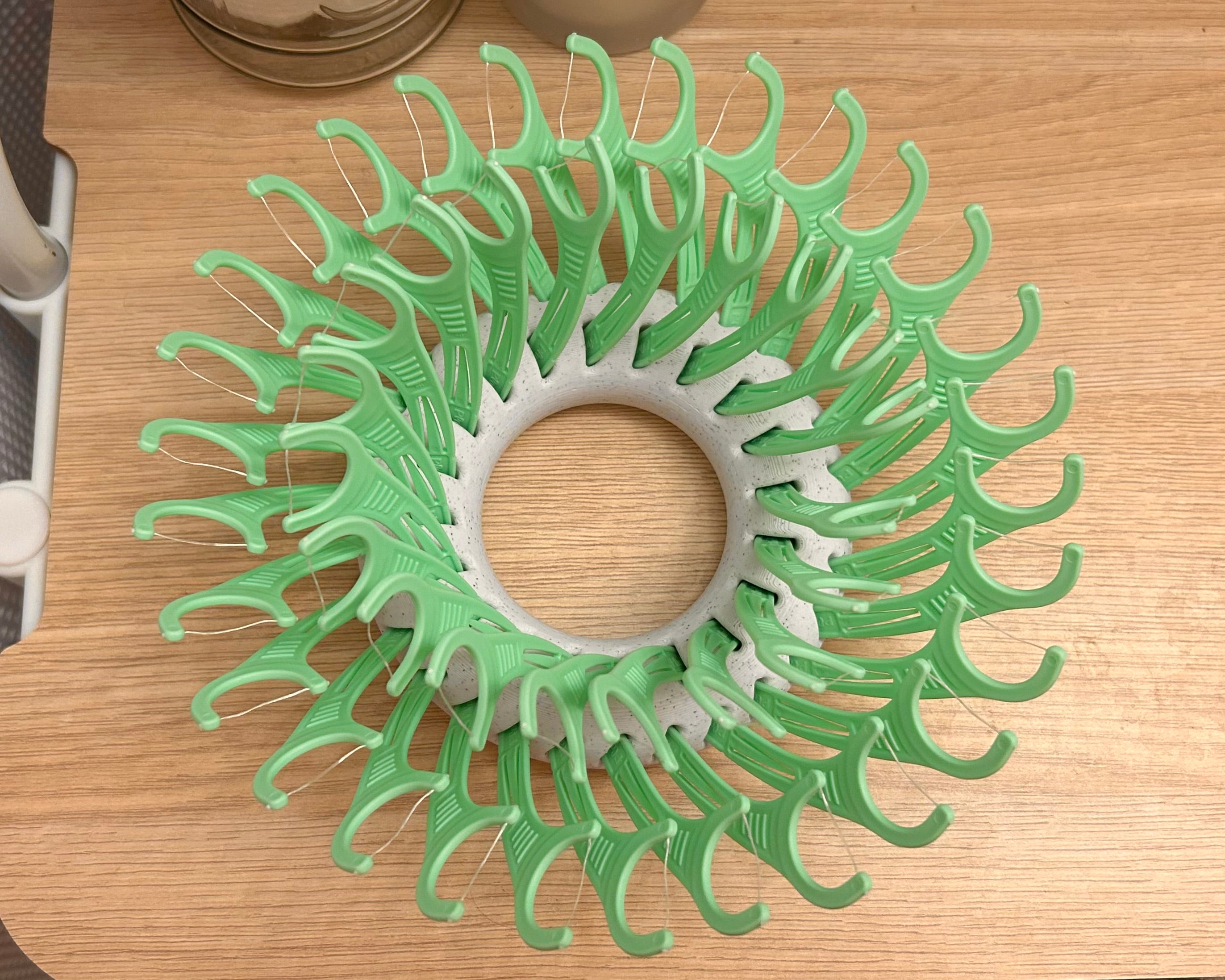 Placker Ring - Floss Holder is een nuttige oplossing voor het opslaan van uw tandzijde-apparaten. Dit slimme organisatiesysteem kan tot 50 Placker-flossers bevatten in eenvoudig toegankelijke slots. Het is ontworpen om uw badkamer netjes en efficiënt te houden, zodat u altijd uw tandverzorgingsproducten binnen handbereik heeft. Met een stevig ontwerp dat geen ondersteunend materiaal vereist tijdens het printen, is deze flosshouder een praktische aanvulling voor elke badkamer.