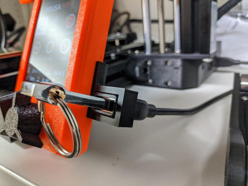 Deze praktische USB-kabelhouder is ontworpen om uw Prusa MINI 3D-printerervaring te verbeteren door de USB-poort naar een beter toegankelijke positie te verplaatsen. Het draagt bij aan het creëren van een meer georganiseerde en functionele werkruimte door uw USB-kabels netjes bij elkaar te houden en binnen handbereik. Met deze kabelhouder vermijdt u rommel en verbetert u uw workflow. Het is ontworpen om veilig op het scherm te klikken, waar het 3 mm aan de achterkant en 2 mm aan de voorkant meet, met een hoogte van 30 mm, wat zorgt voor een stabiele montage. Een effectief hulpmiddel voor kabelbeheer dat ervoor zorgt dat uw kabels een vaste plaats hebben.