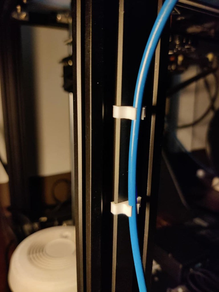 Deze veelzijdige clip is ontworpen om veilig te worden bevestigd aan 2040 aluminium extrusies, die vaak voorkomen op 3D-printers zoals bijvoorbeeld de Ender 5 Pro. Het biedt een ideale oplossing voor het organiseren en beheren van verschillende slangen en kabels in uw opstelling. De clip is perfect voor het geleiden van PTFE-slangen, waardoor ze netjes op hun plaats blijven en verstrengeling of onnodige beweging wordt voorkomen. Naast PTFE fungeert het ook als een effectieve kabelmanagementclip voor dikkere kabels, zoals bijvoorbeeld van webcams, en helpt het om uw werkruimte opgeruimd en functioneel te houden. Door deze draadclip te gebruiken, kunt u rommel verminderen en een meer georganiseerde omgeving rond uw apparatuur behouden, wat bijdraagt aan een probleemloze werking. Het robuuste ontwerp zorgt voor een betrouwbare grip en biedt een praktische manier om uw installatie schoon en efficiënt te houden.