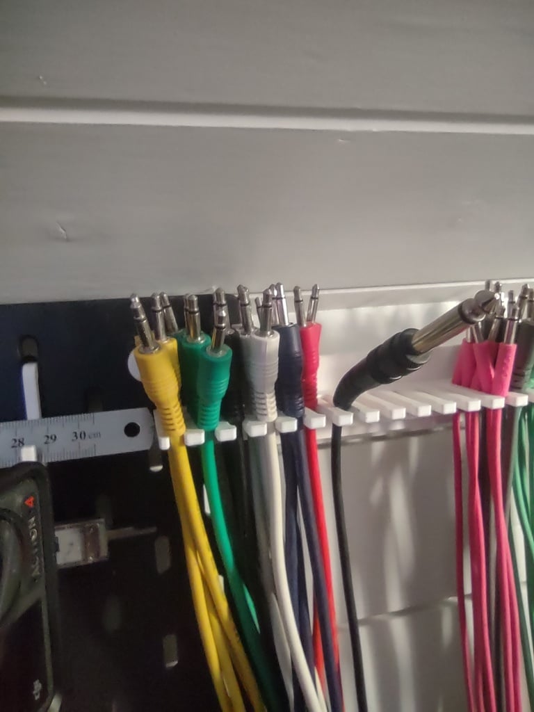 Deze praktische Skadis Eurorack kabelhouder is ontworpen om orde te scheppen in uw muziekstudio of werkruimte. Hij kan eenvoudig worden geïntegreerd met uw IKEA Skadis-systeem en biedt een efficiënte oplossing voor het opbergen van uw Eurorack-kabels. Met deze slimme kabelhouder kunt u gemakkelijk verwarde kabels en rommel voorkomen, zodat uw Eurorack-kabels altijd georganiseerd en gemakkelijk toegankelijk zijn. Optimaliseer uw kabelbeheer en bereik een meer gestroomlijnde en overzichtelijke setup.
