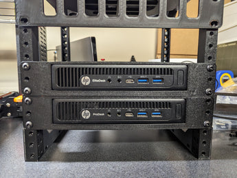 Optimaliseer uw serverruimte met deze speciaal ontworpen 10" 1U rack mount, gemaakt voor HP EliteDesk en ProDesk Mini G2 USFF-computers. Deze rack mount biedt een veilige en georganiseerde oplossing voor de integratie van uw mini-pc's in een standaard rack-omgeving.