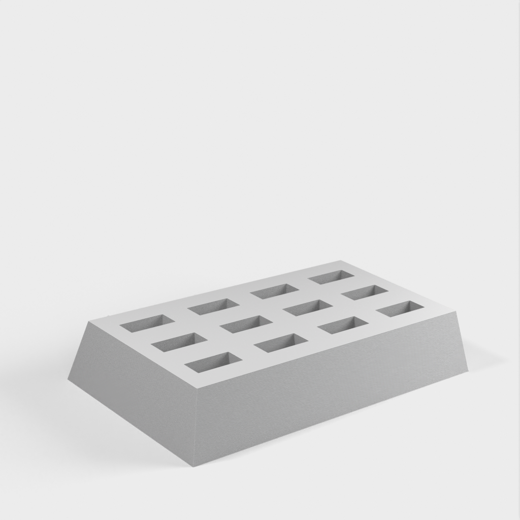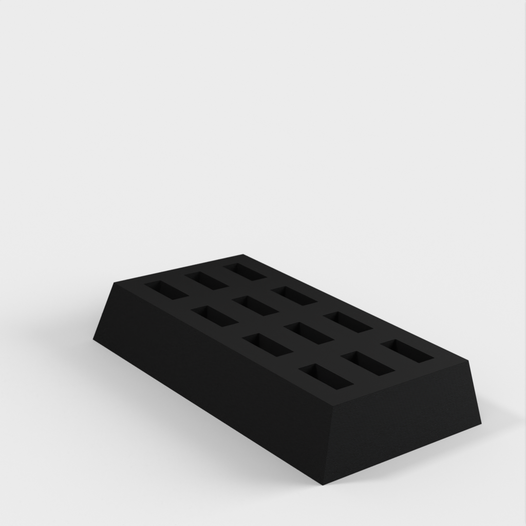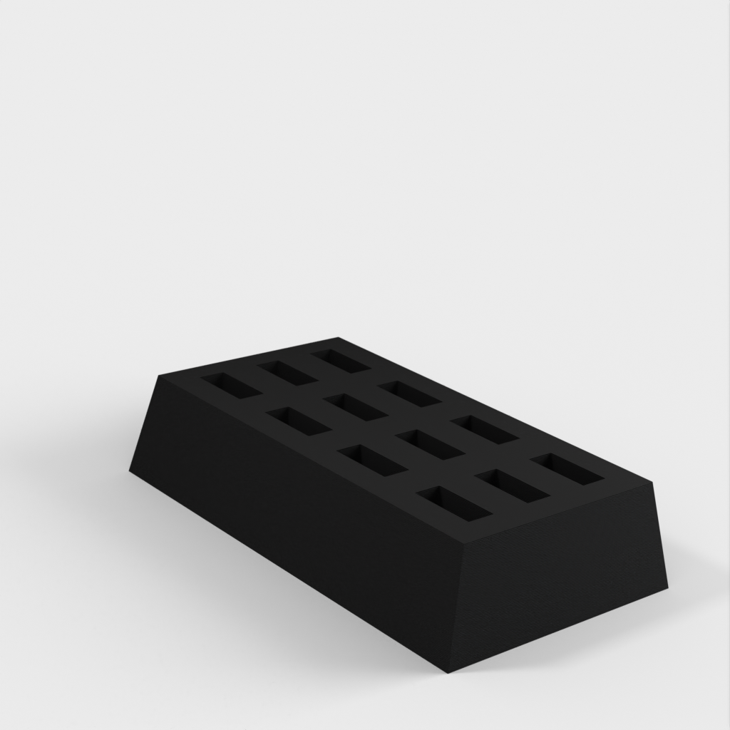 USB-houder met 12 poorten, verkrijgbaar in hoge en korte versies.