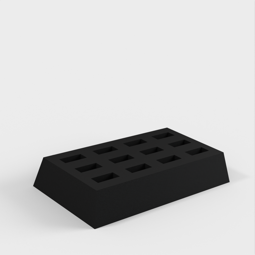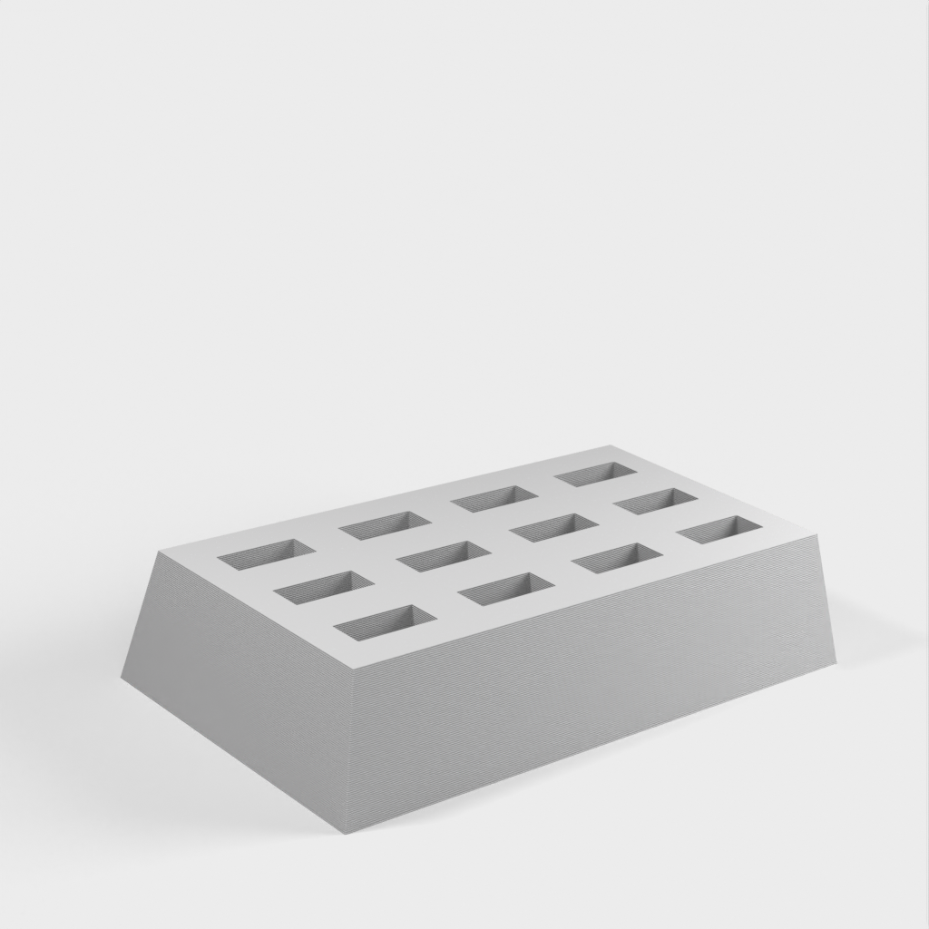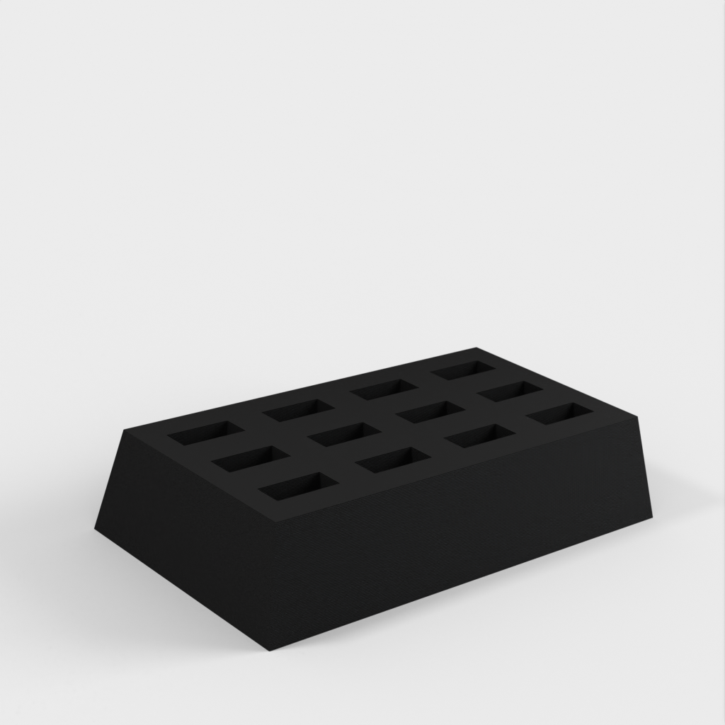 USB-houder met 12 poorten, verkrijgbaar in hoge en korte versies.