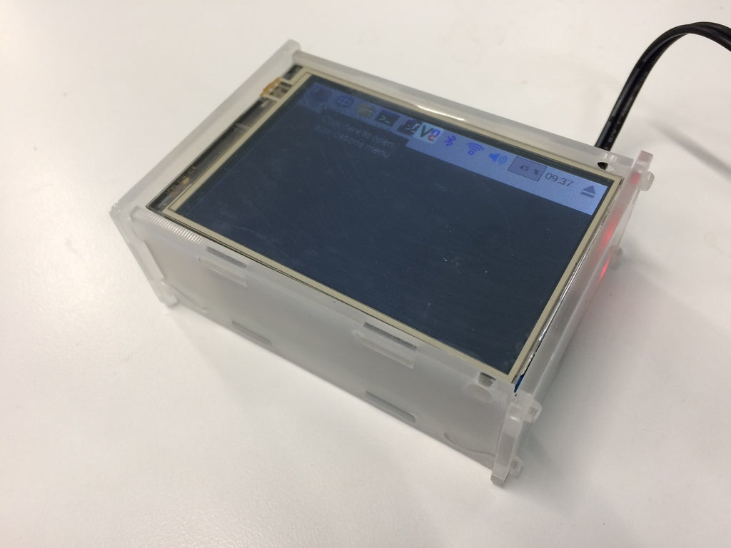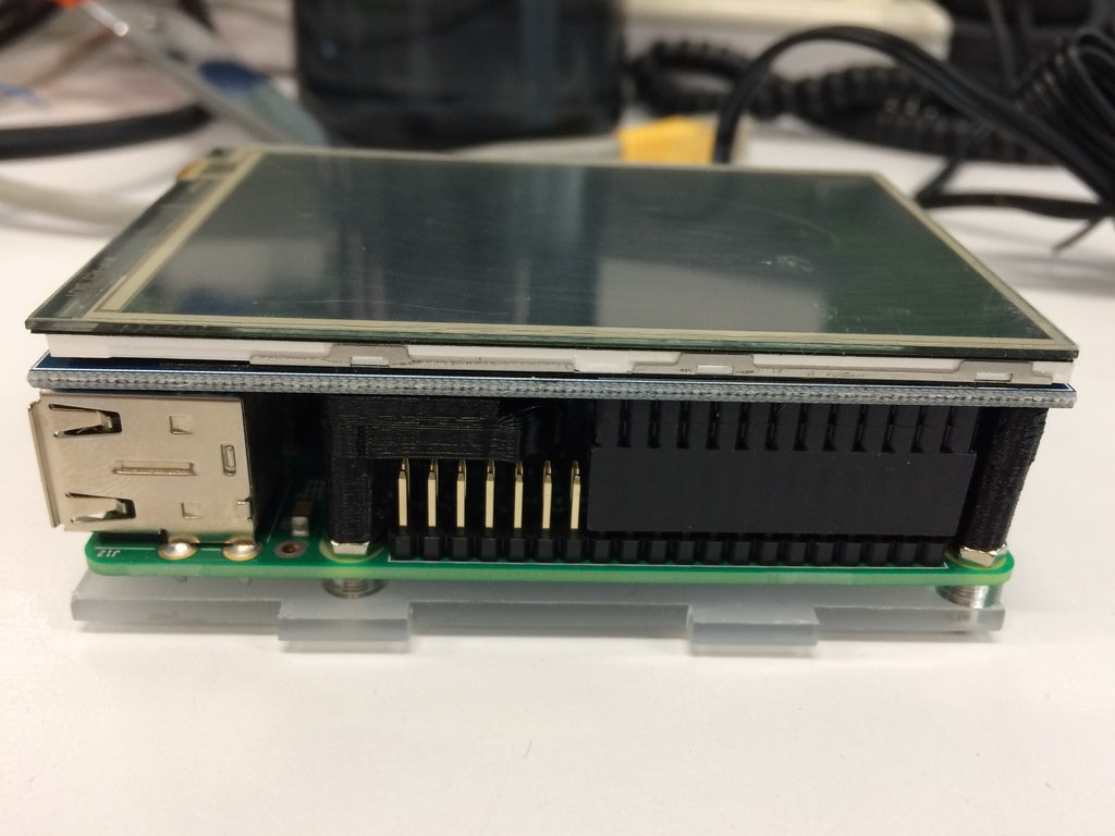 Deze 3,5'-aanraakschermsteun is speciaal ontworpen voor mijn versie van een 3,5'-aanraakscherm. De belangrijkste wijzigingen bestaan uit het maken van kanalen waardoor de onderdelen aan de achterkant van het touchscreen de steun kunnen passeren. Het product is getest met andere versies van het scherm en ook die lijken goed te werken.