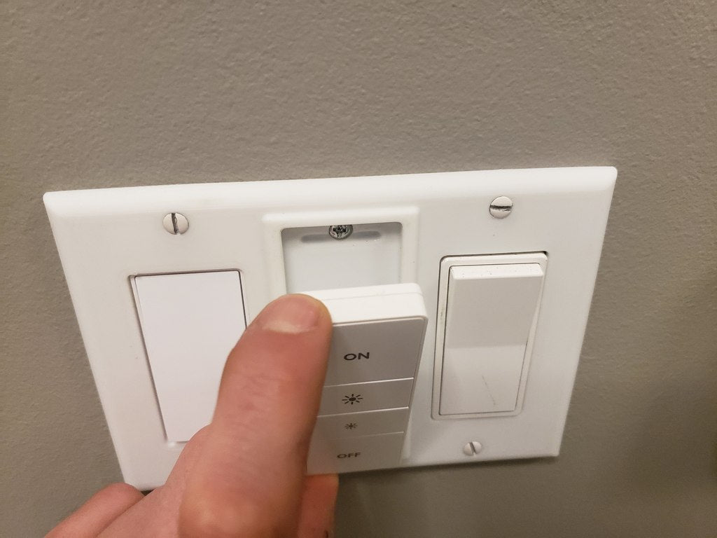 De afstandsbediening wordt veilig op zijn plaats gehouden door middel van standaard Hue-magneten, die met een druppeltje lijm kunnen worden vastgemaakt voor optimale stabiliteit. Dit ontwerp zorgt voor een strakke esthetiek en praktische toegang tot je slimme verlichtingsfuncties, terwijl je de mogelijkheid behoudt om traditionele lichtschakelaars ernaast te bedienen. Het is een praktisch Philips Hue-accessoire dat helpt om je smart home-opstelling te stroomlijnen en het bedienen van bijvoorbeeld Philips Hue-lichtstrips intuïtiever te maken.