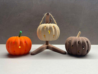 De pompoenen zijn eenvoudig te maken met een 3D-printer, en je kunt zonder problemen eventuele ondersteuningsstructuren verwijderen dankzij het doordachte ontwerp. Ze zijn beschikbaar in verschillende kleuren en materialen, zoals beige, bruin, groen en oranje PLA evenals groene PETG-HF, waarmee je je decoratie kunt aanpassen aan je stijl.