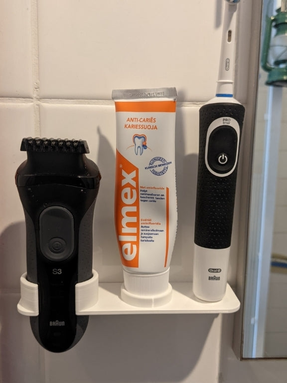- Houdt elektrische tandenborstel, tandpasta en scheerapparaat samen