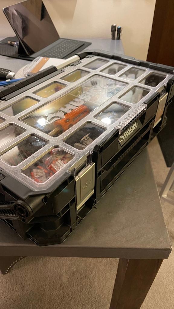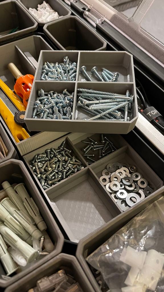 Dit op maat gemaakte inzetstuk is gemaakt om de bovenste middensectie van je Husky 22 inch W 22-compartimenten Connect Cantilever Small Parts Organizer te optimaliseren. De op maat gemaakte opbergoplossing biedt een efficiënte manier om je kleine onderdelen te organiseren, waardoor het gemakkelijker wordt om diverse componenten bij te houden en snel te vinden. Het inzetstuk fungeert als een handige bak die speciale compartimenten creëert voor kleinere items zoals schroeven, moeren, bits of elektronica-onderdelen.