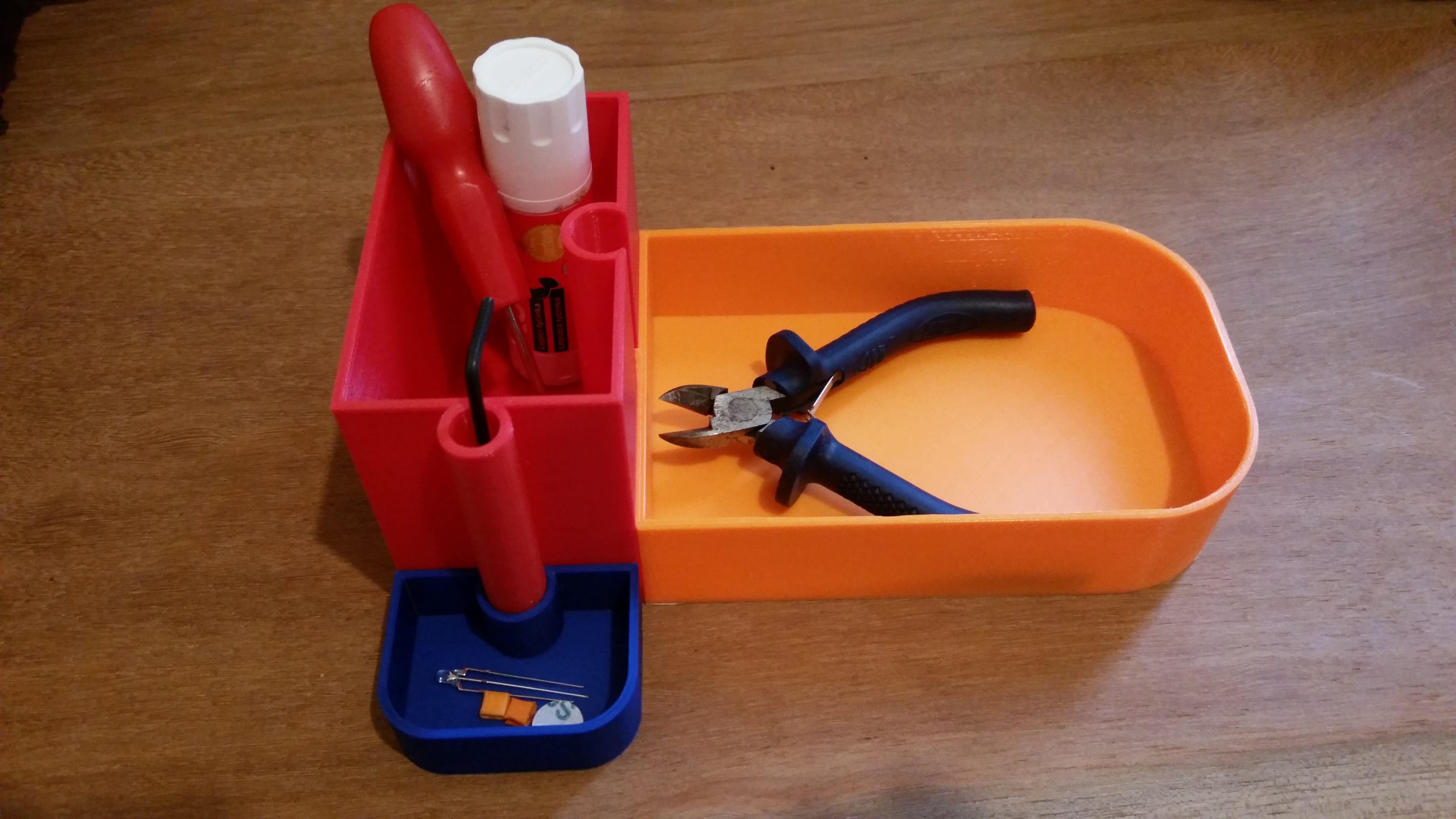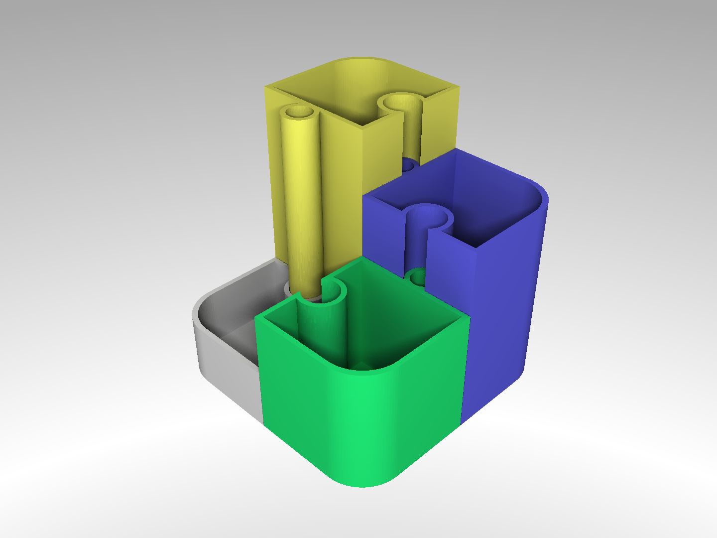 Dit is een aangepaste versie van pencilbox van Unix. U kunt het bronbestand gebruiken met OpenSCAD om een aangepaste lay-out te maken. Orden uw bureaublad met deze modulaire en aanpasbare bureaubladorganizer, ideaal om uw potloden en pennen netjes en georganiseerd te houden.